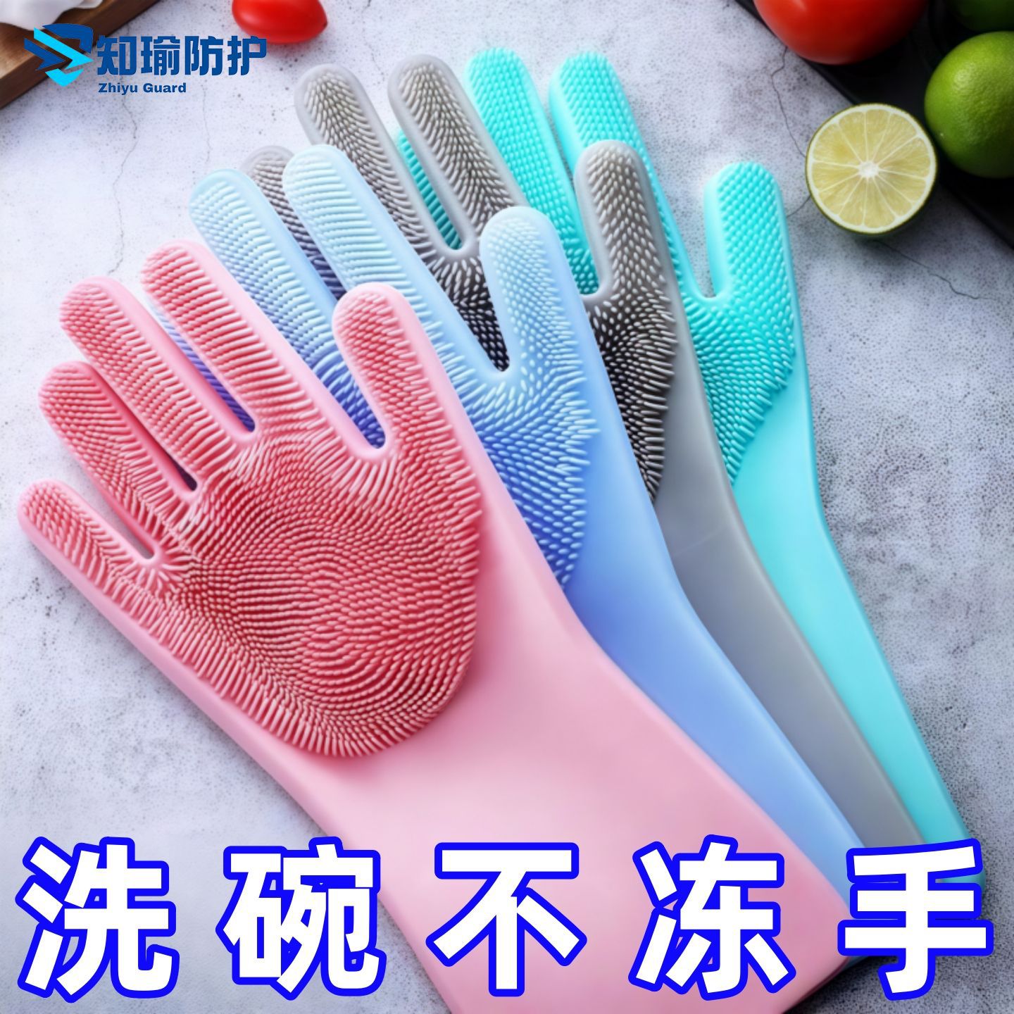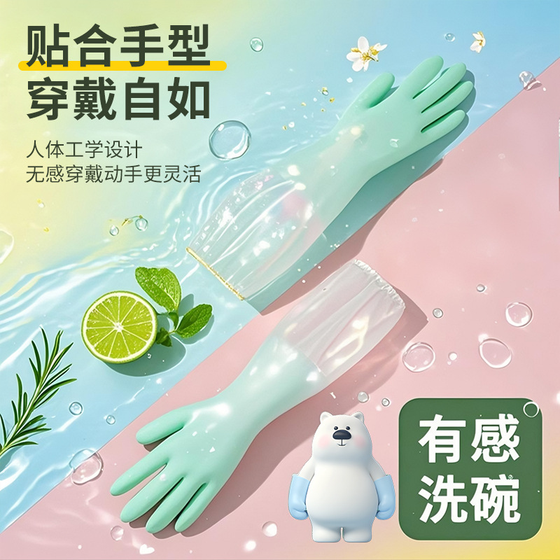 加长加厚硅胶洗碗手套女家务厨房清洁耐用防水洗衣洗菜刷碗洁神器