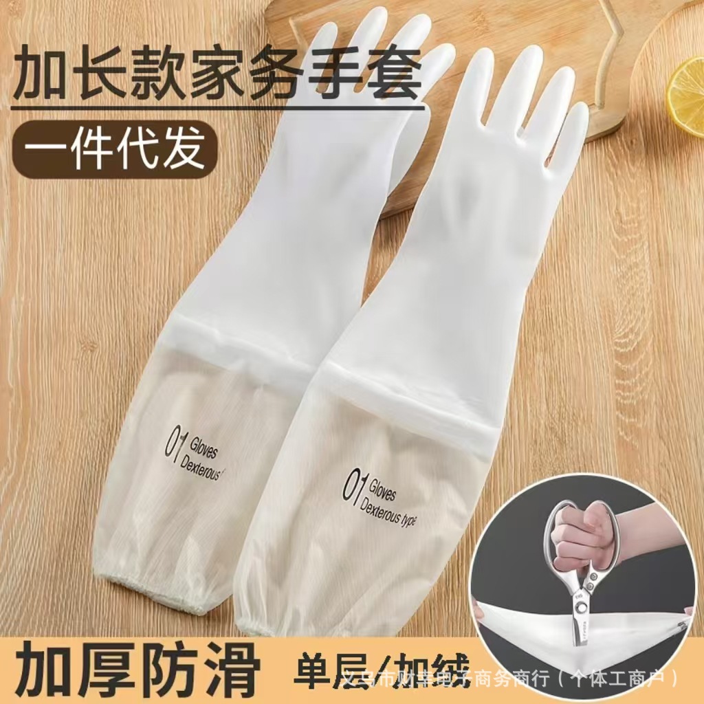 跨境加长乳胶手套家用洗碗厨房橡胶耐用塑胶清洁洗衣胶皮长袖