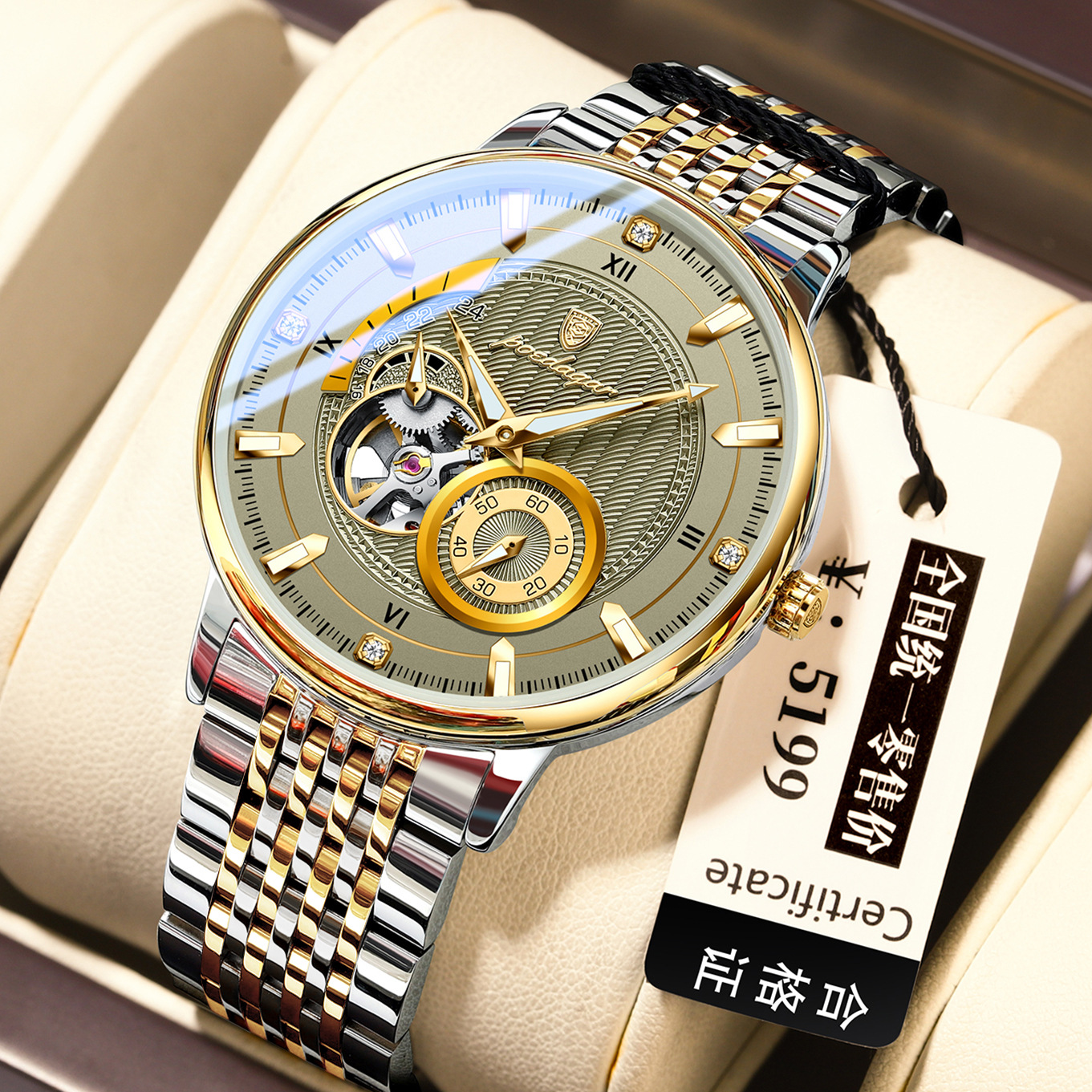 【机芯】:原装全自动机械机芯,质量更好,走时稳定精准!