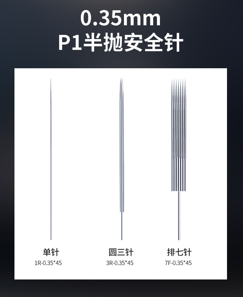色分類 0.18毛先単針1個,単針1本,三円針1個,五円針1個,5列針1個,7列針1個,単針キャップ1個,3ラウンドニードルキャップ1個,5ラウンドニードルキャップ1個,5列ニードルキャップ1個,7列ニードルキャップ1個,三叉針1個,二列七針1個,二列七針専用針キャップ1個