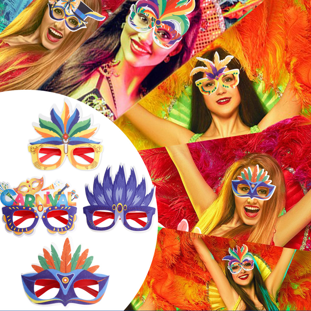 新型カーニバルパーティーメガネブラジル祭り仮装舞踏会仮装マスクカラー羽カラーバーメガネ枠