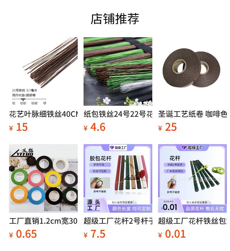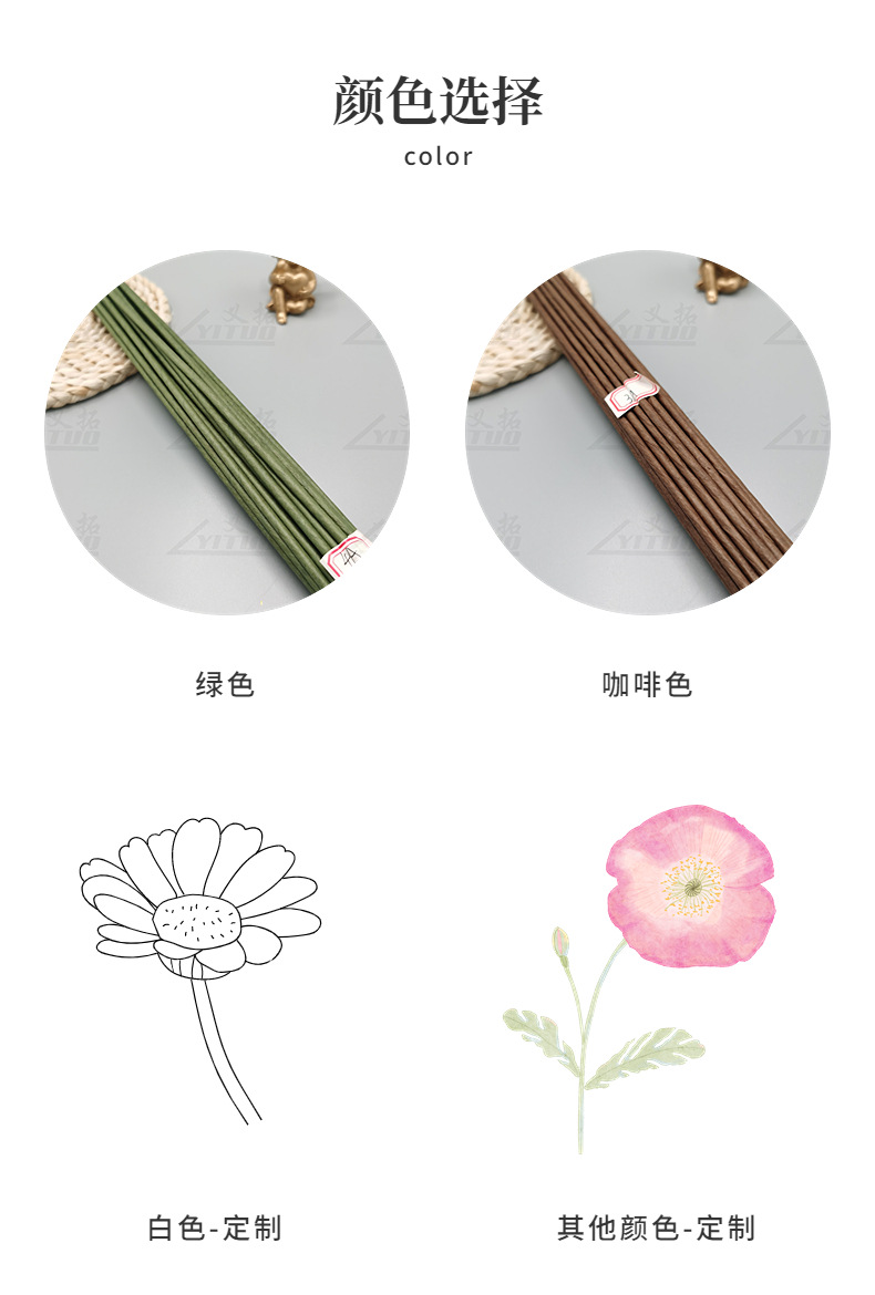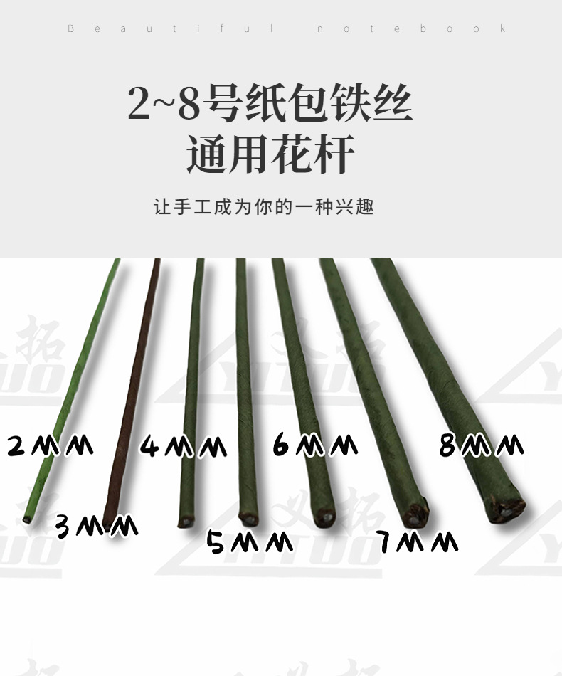 紙包花棒2号-8号花芸鉄線網花diyシミュレーション花部品包紙鉄線花棒鉄線