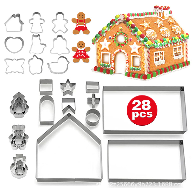 28点セットクリスマスビスケット金型姜パイ屋3d立体ステンレスセット焙煎家型クッキーツール