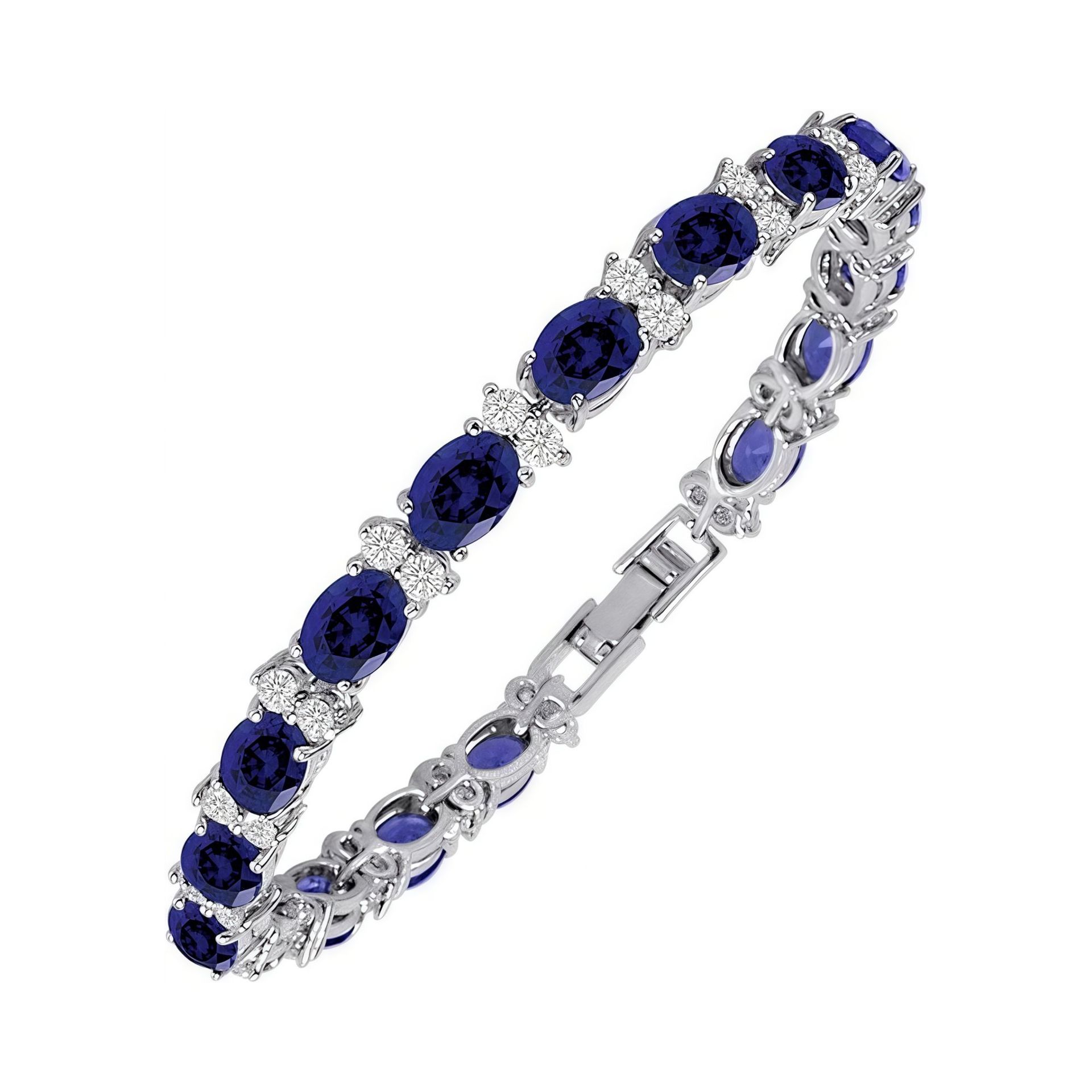 【很多星星】深蓝爱心满钻锆石手链复古清冷感超闪镶钻法式宫廷风