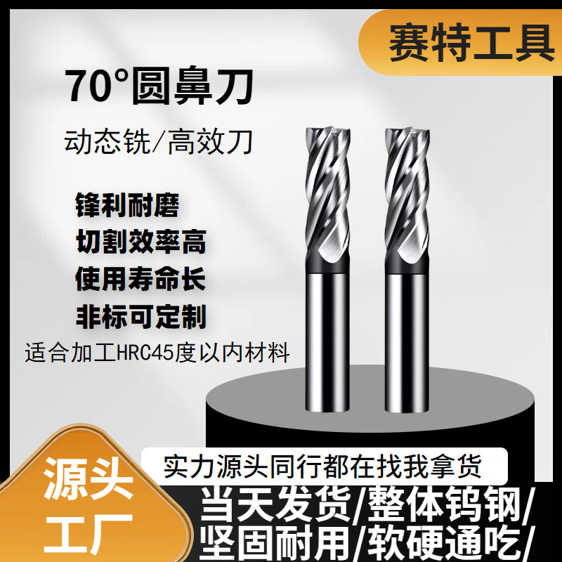 现货4刃合金涂层不锈钢开粗锣动态铣刀高效刀 钨钢铣刀70度圆鼻刀