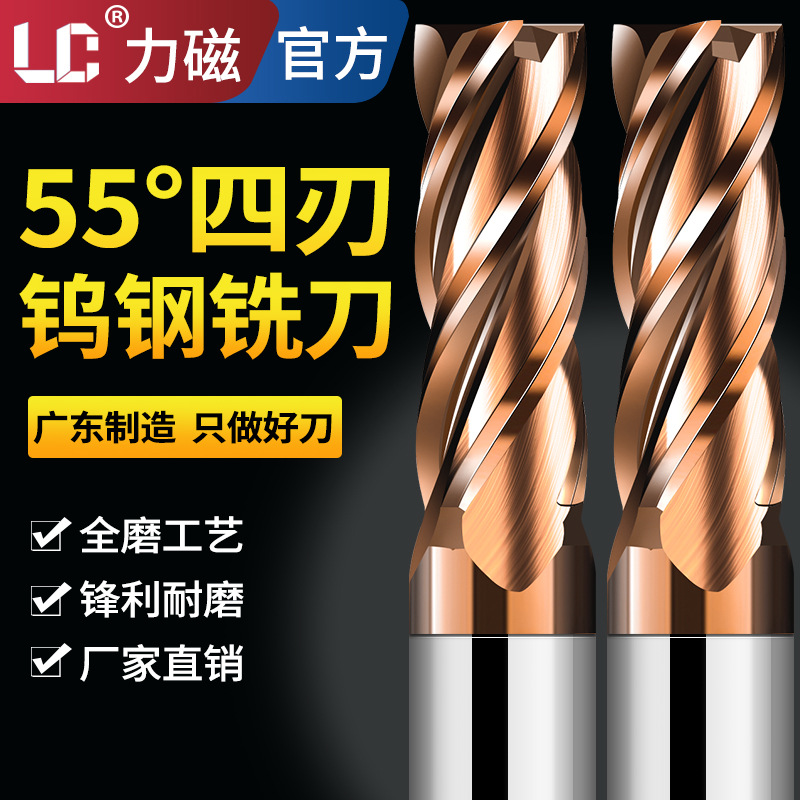 力磁55度钨钢铣刀4刃合金涂层锣刀CNC数控加工中心钢用平底立铣刀
