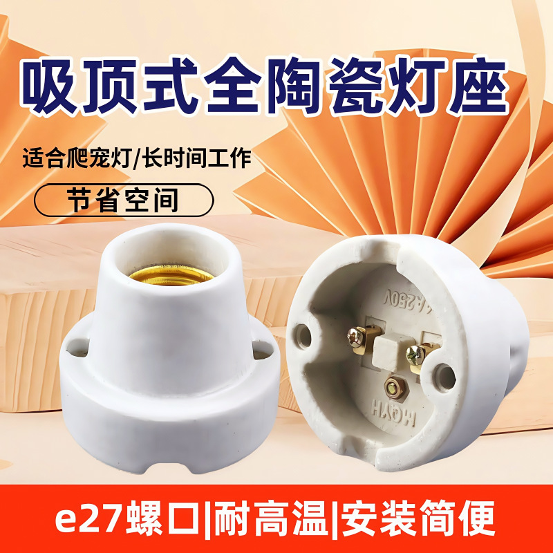 圆形全陶瓷灯头座 取暖加热灯泡专用灯座 耐高温E27螺口吸顶灯座