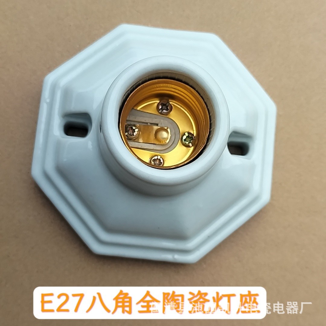 E27八角全陶瓷灯头灯座耐高温抗阻家装工程批发明装暗装螺口灯座