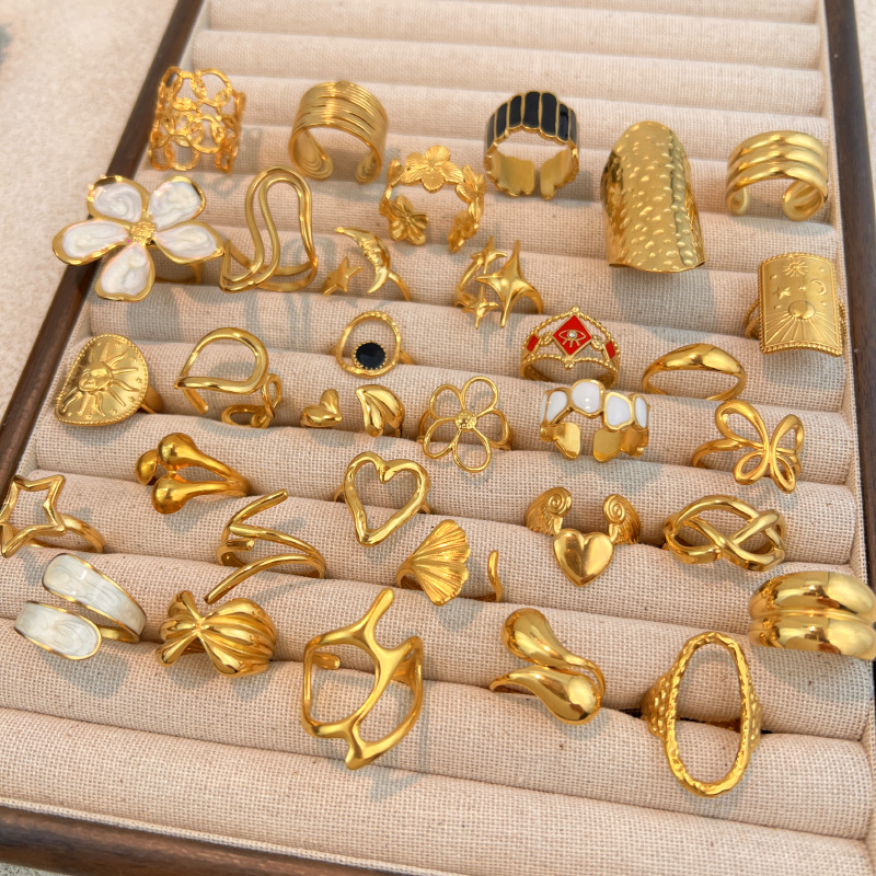 欧美跨境彩色钛钢戒指轻奢高级感不锈钢开口戒指18k金不褪色饰品