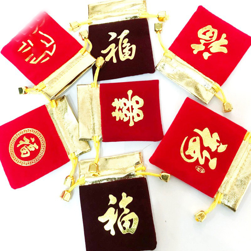 ジュエリー包装袋福袋喜袋赤金辺絨毯布袋紐引きポケット文遊び仏珠収納包装袋