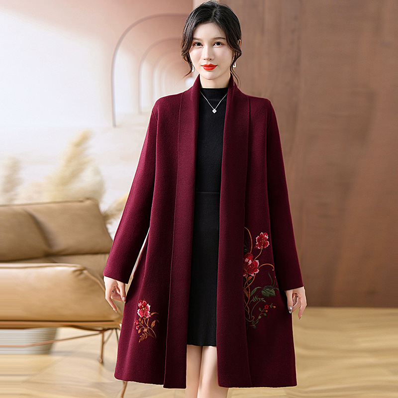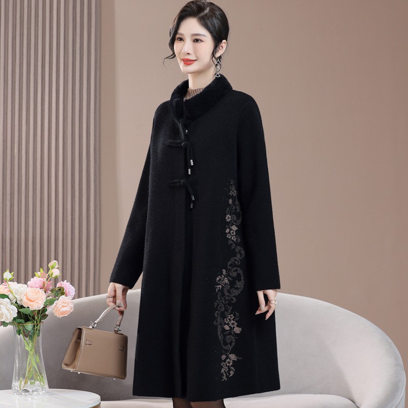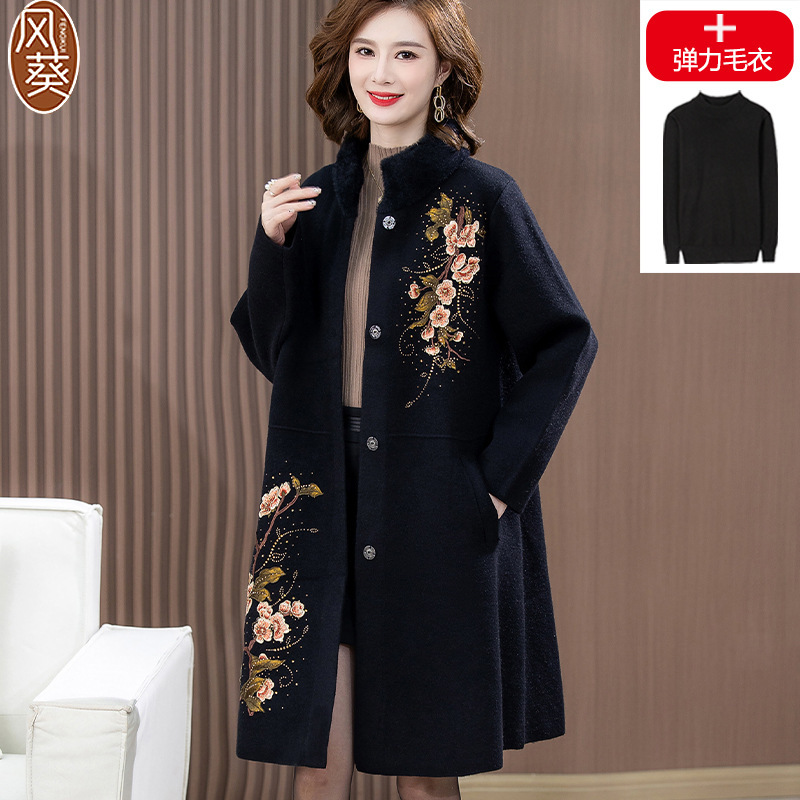 広夫人の冬服の両面はミンクのコートの中で年配のお母さんのファッション的な洋気の刺繍の中の長いコートに似ています。