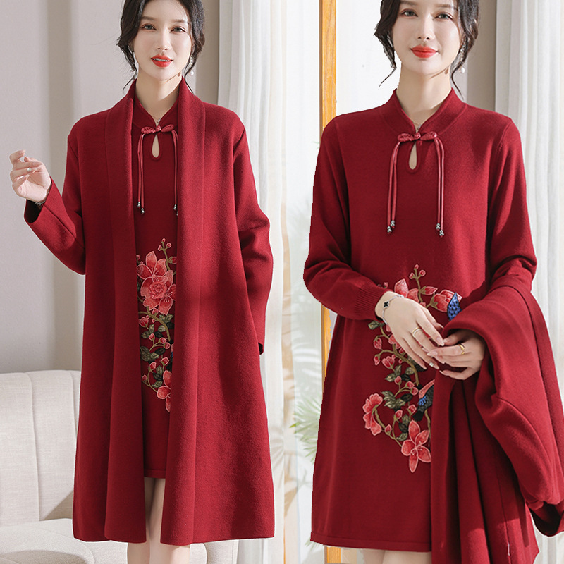 お母さんのベルベットの厚いセーター中年の女装秋冬服の本命年の赤い年越し服の中高年のシャツ