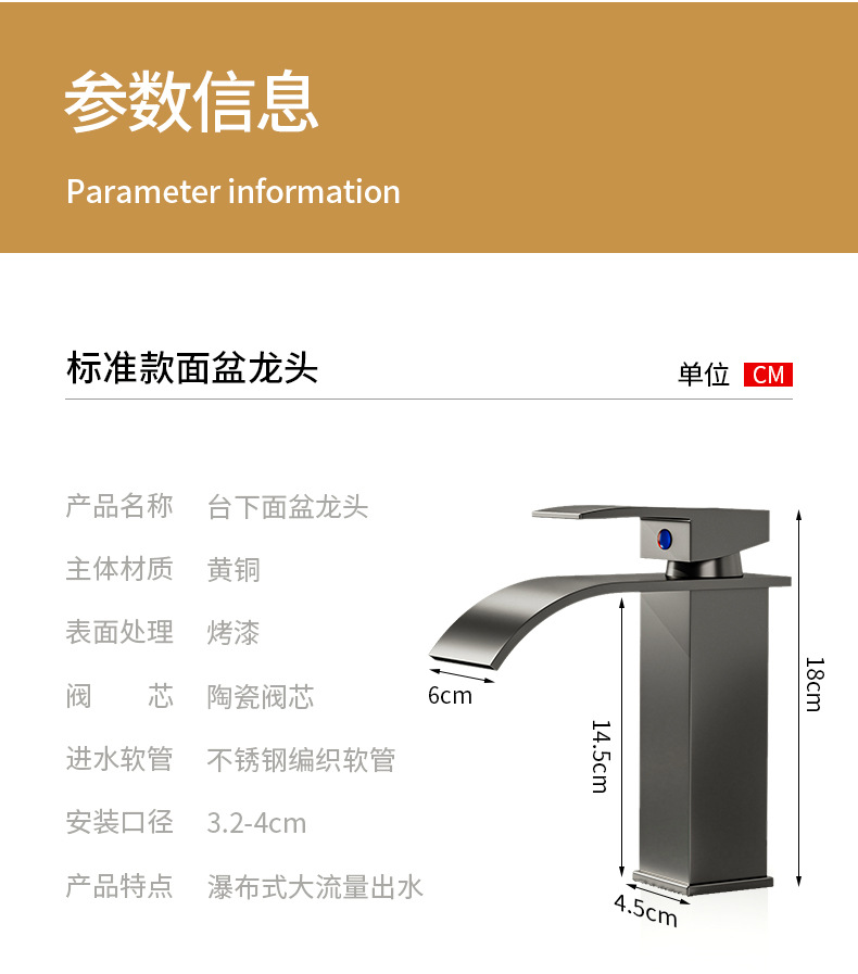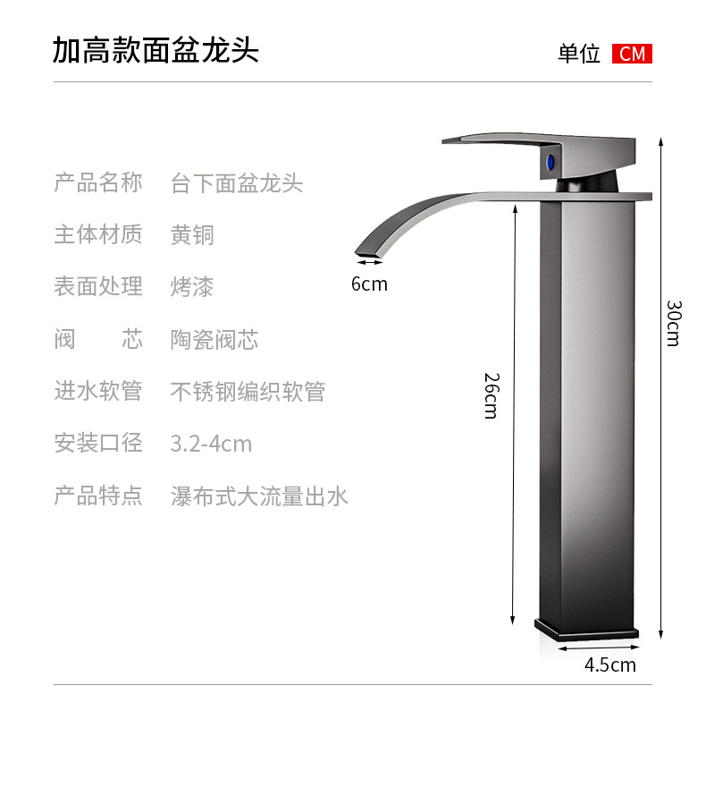 クロスボーダー洗面台滝型蛇口 冷温両用 ブラックステンレス 広口蛇口 バルコニー用シンプル洗面台蛇口