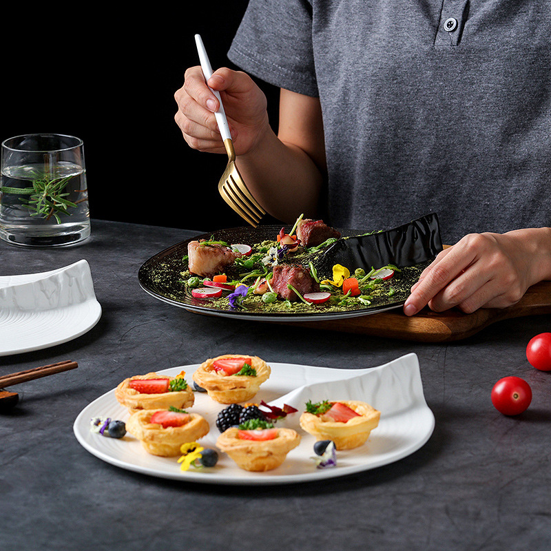 創意黒色白色洋食皿ステーキ皿デザート皿平皿ホテルレストラン境地皿異形皿