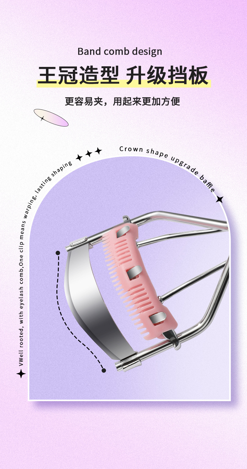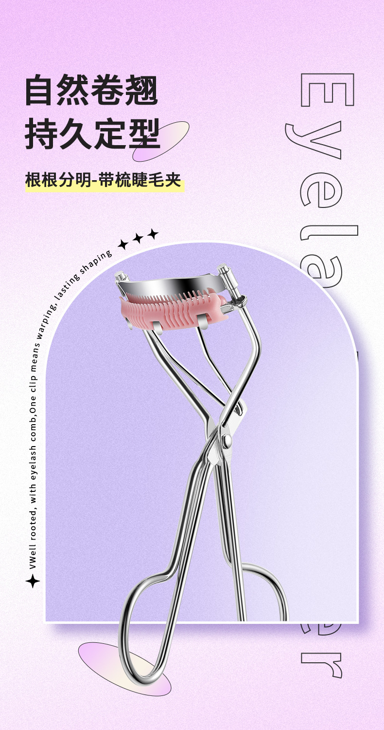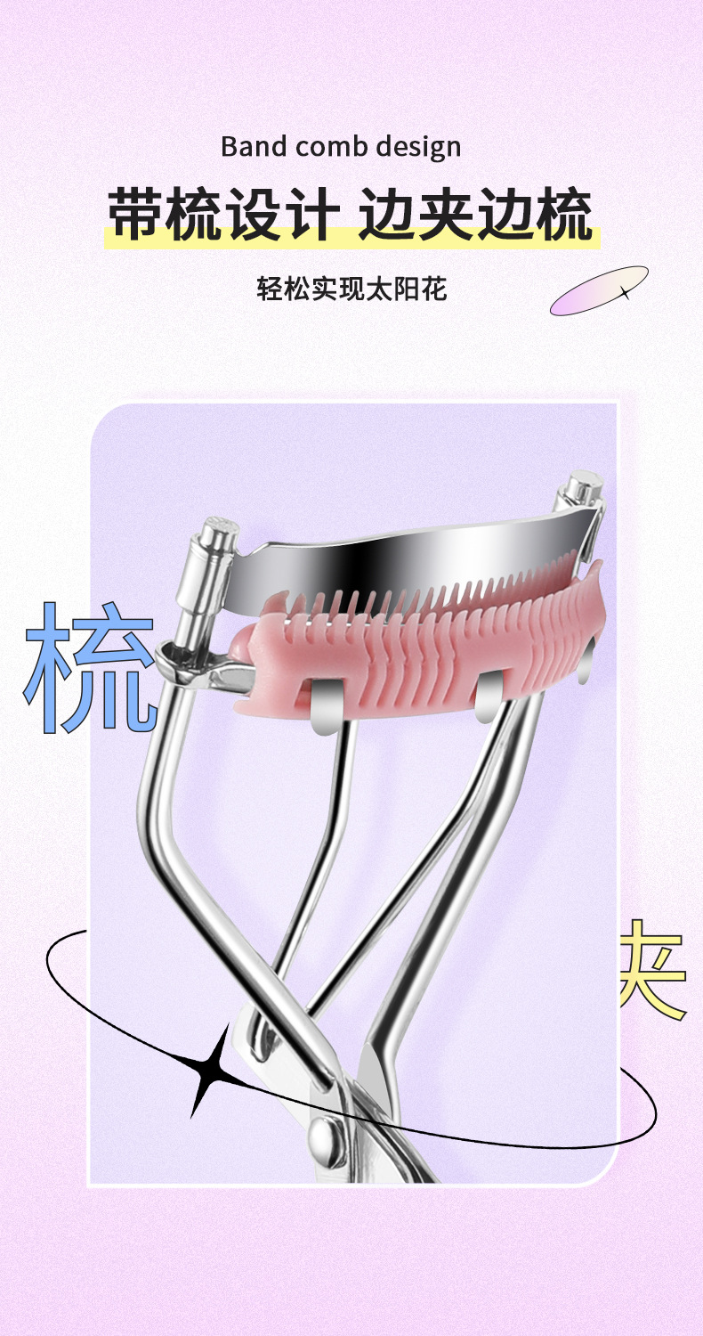 厂家供应带梳睫毛夹多色卷翘定型睫毛器广角太阳花美睫工具睫毛夹