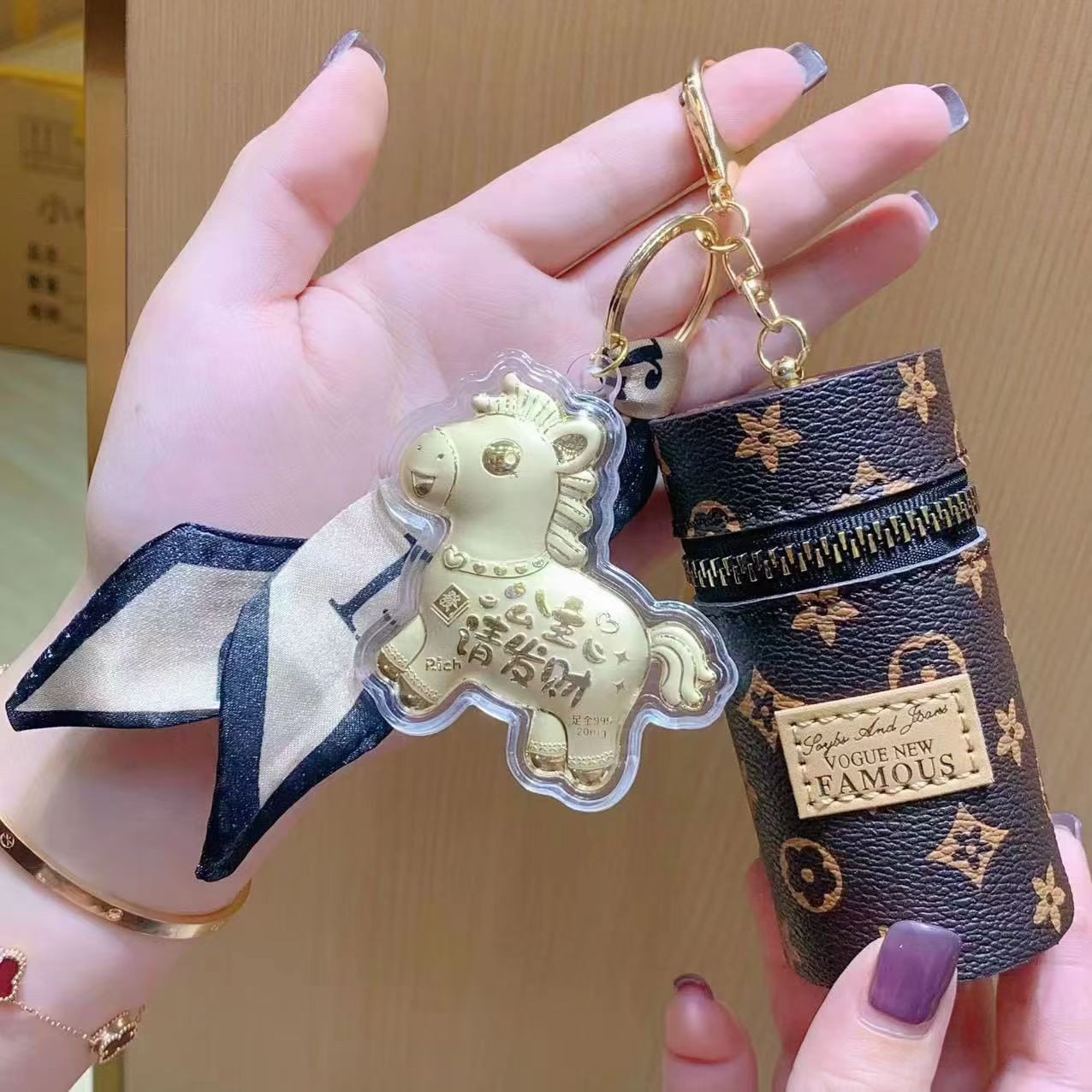 新款网红爆款时尚百搭迷你口红包钥匙扣包挂件轻奢风便携耳机包