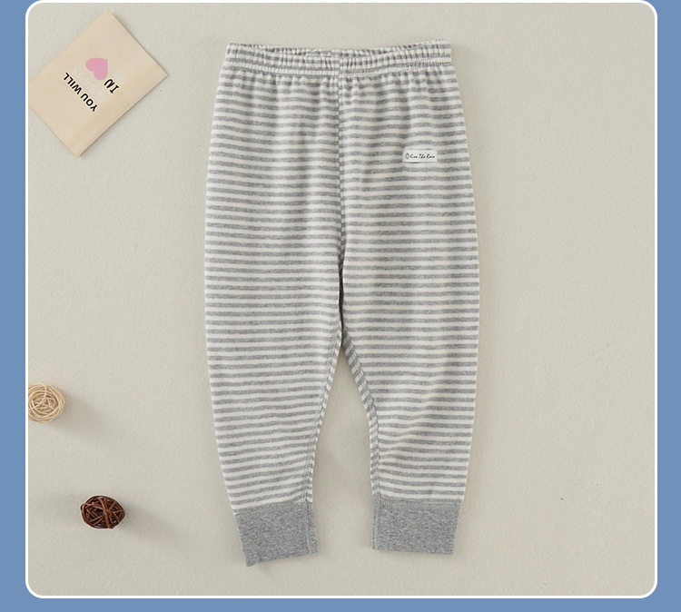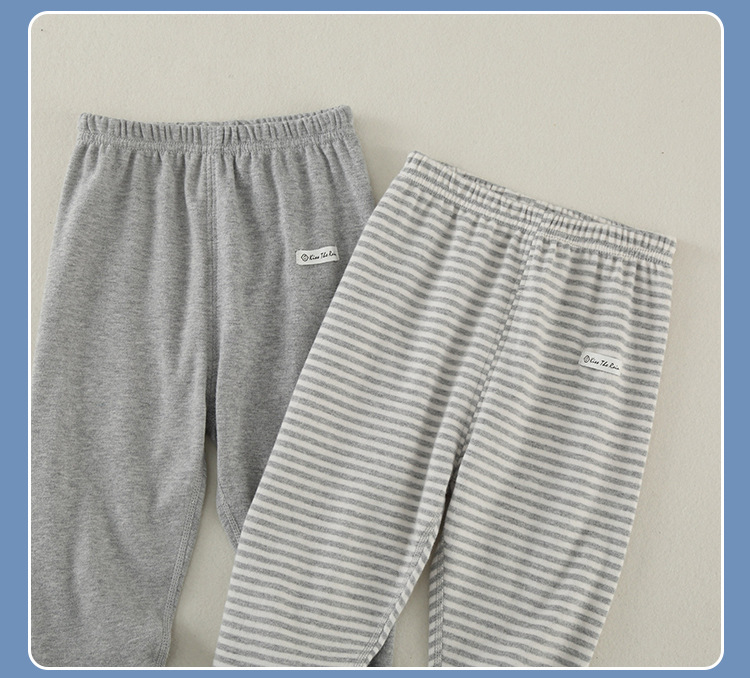 2枚の赤ちゃんの秋冬のレギンスのズボンは骨のない純綿の子供の秋のズボンの春と秋の男女のストライプの保温ズボンです。