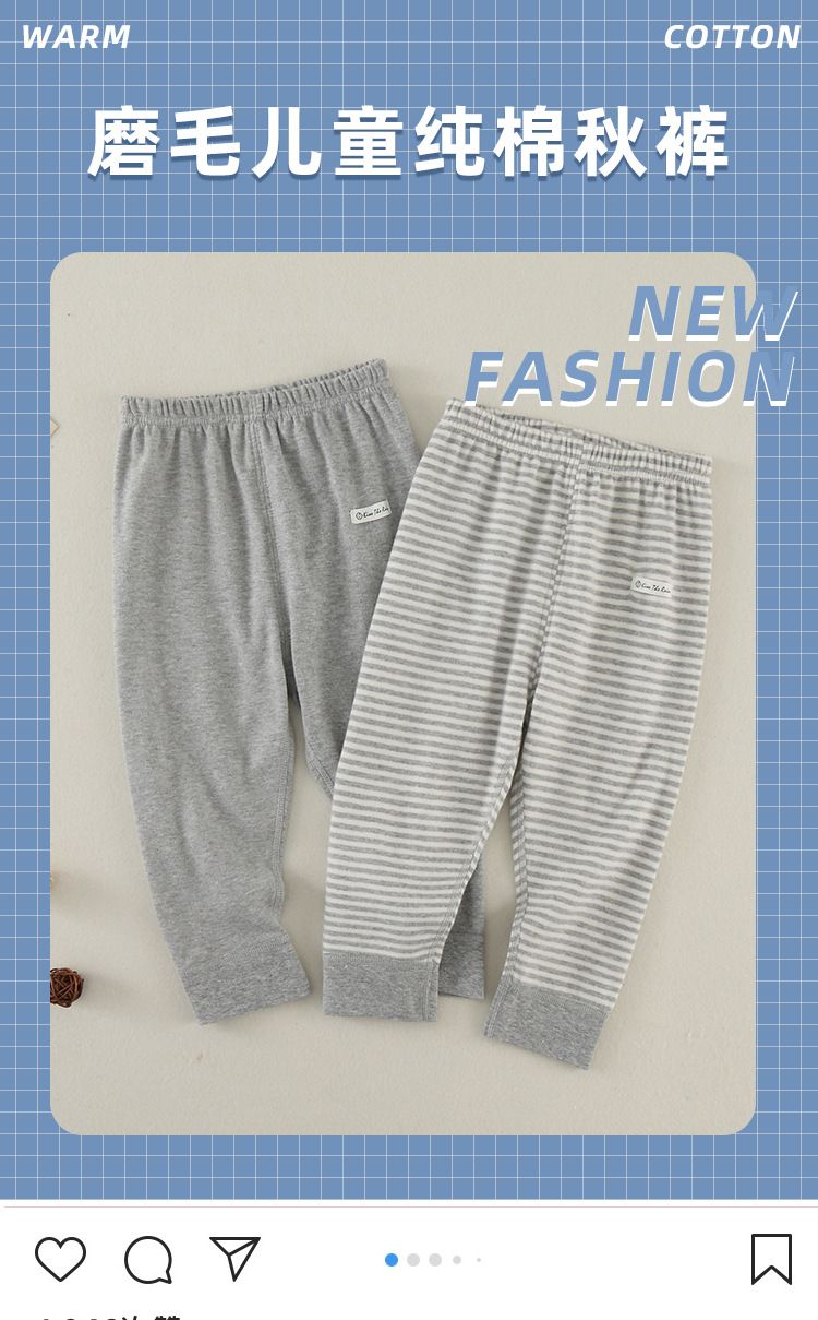 日本製2枚組子供用秋用パンツ、綿100%、男女兼用、裏起毛、純綿、保温性のある長ズボン、ベビー用綿毛糸パンツ