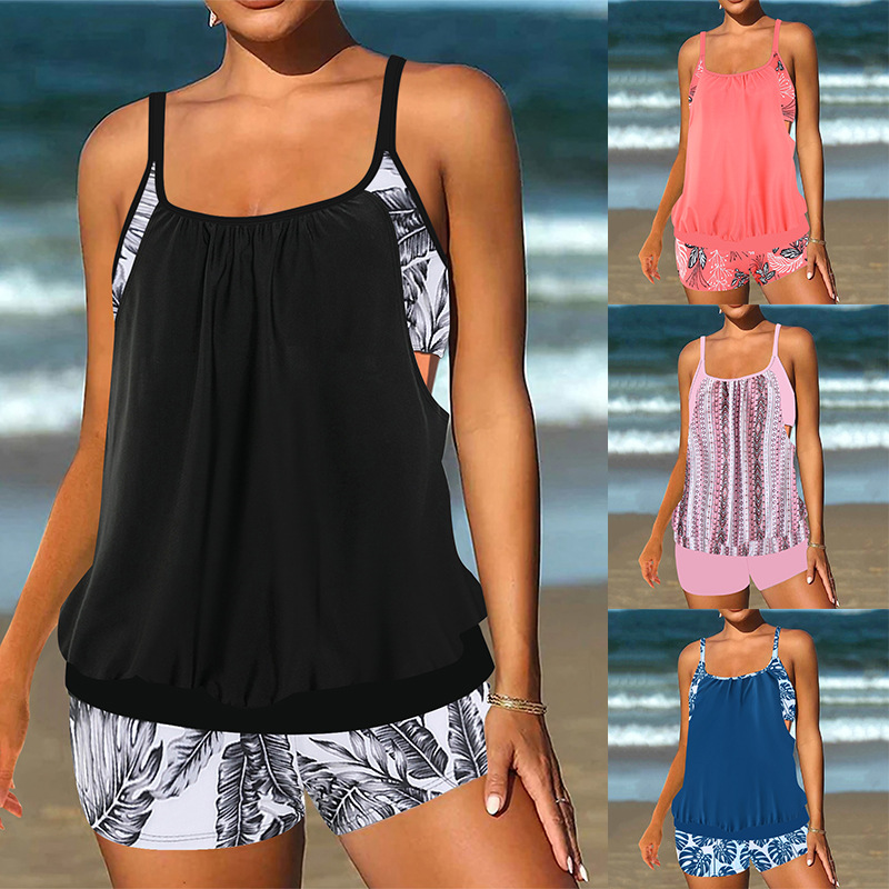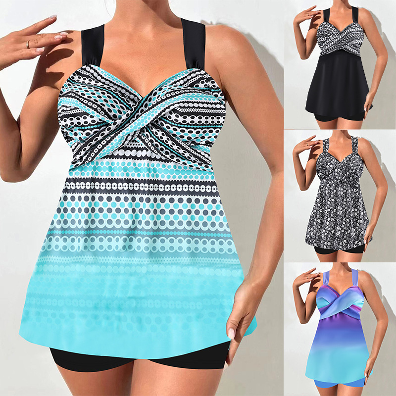 2025年モデル 分割型 大きいサイズ ボクサーパンツ型水着 レディース タンキニ 欧米風 プリント水着 独立系サイト 跨境貿易