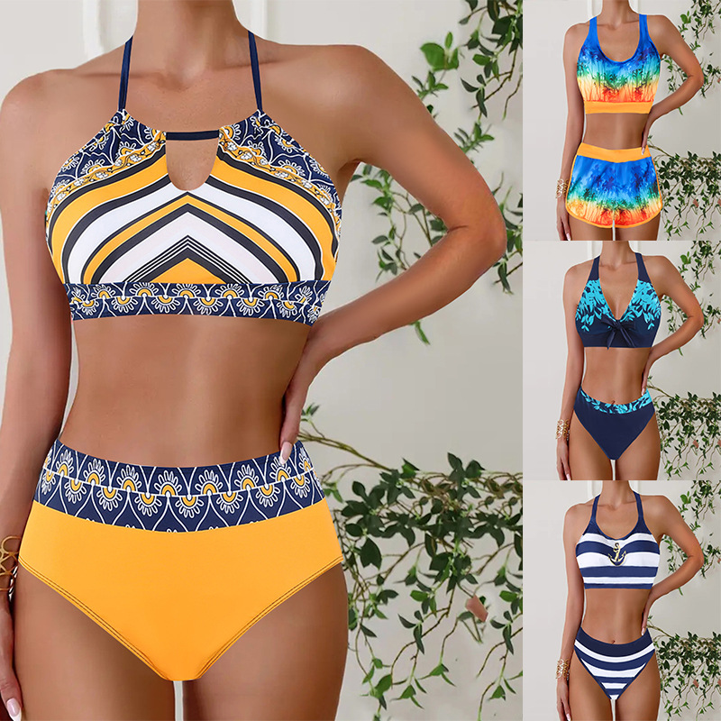 亚马逊外贸比基尼2025新款跨境欧美印花分体泳衣女两件套沙滩泳装
