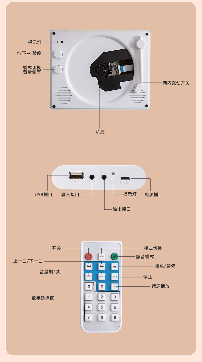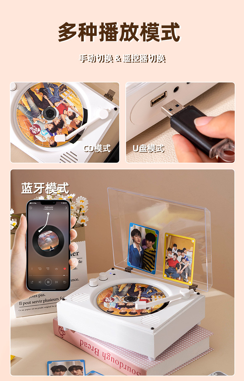 クロスボーダーCDプレーヤーレトロブルートゥース多機能uディスクTFメモリ音質ポータブルディスクCD機ミニプレゼント