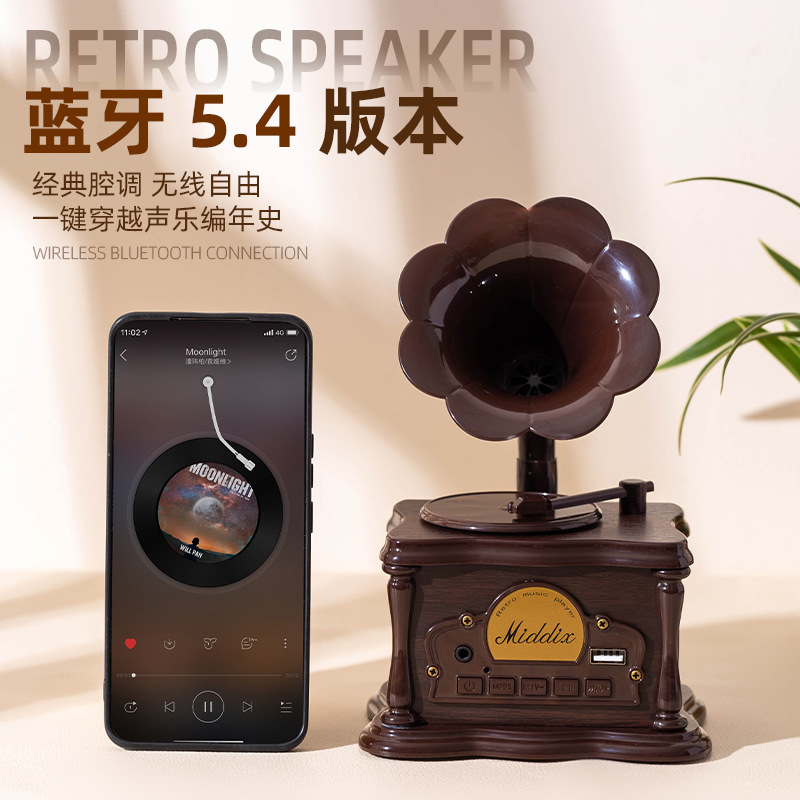 复古蓝牙音响迷你留声机家用装饰礼品客厅音箱批发立体声复古风潮