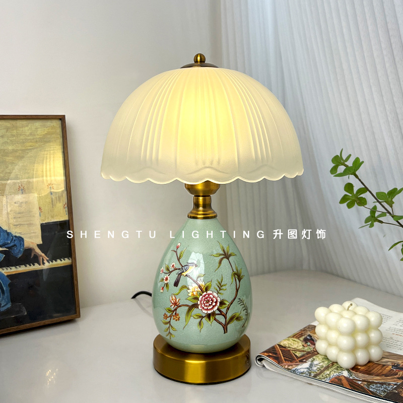 電気スタンド寝室ベッドヘッドランプアメリカのアイデア北欧レトロロマンチックファッションリビングルーム书斎調光暖かいセラミックランプ