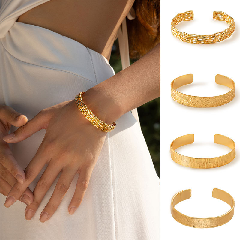 クロスボーダーライト高級ブレスレット、色保持クラシック、多用途INSシンプル通勤ブレスレット、リアルゴールド電気メッキオープンラウンド
