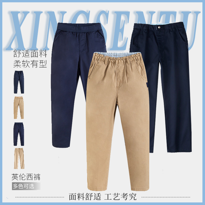 中小学生英伦风春秋校服裤子藏青色深灰色运动裤浅灰色直筒休闲裤