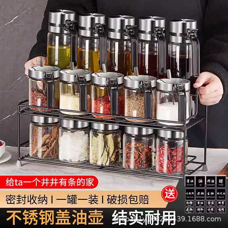 キッチンガラス調味料家庭用回転ステンレス調味料缶卸売り12セット調味料セットメーカー