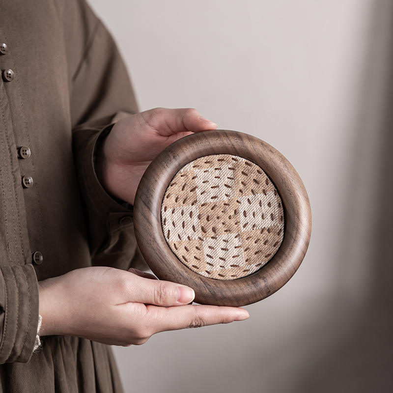 创意胡桃木手缝布垫壶承复古茶壶盖碗干泡台茶托壶垫家用隔热茶承