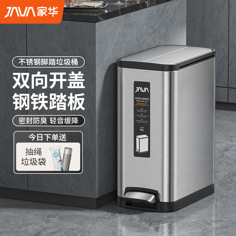 JAVA家華厨房分類ゴミ箱軽豪華ステンレス足蓋付き二桶トイレゴミ箱卸売り