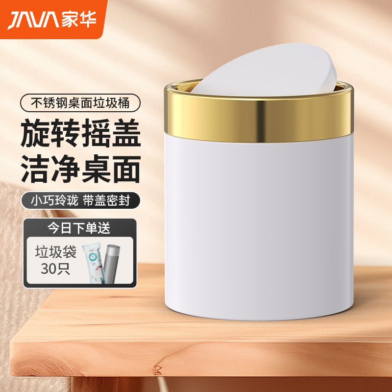Java家華ミニ円形デスクトップは蓋付きゴミ箱オフィス家庭用多機能収納桶紙かごを押す