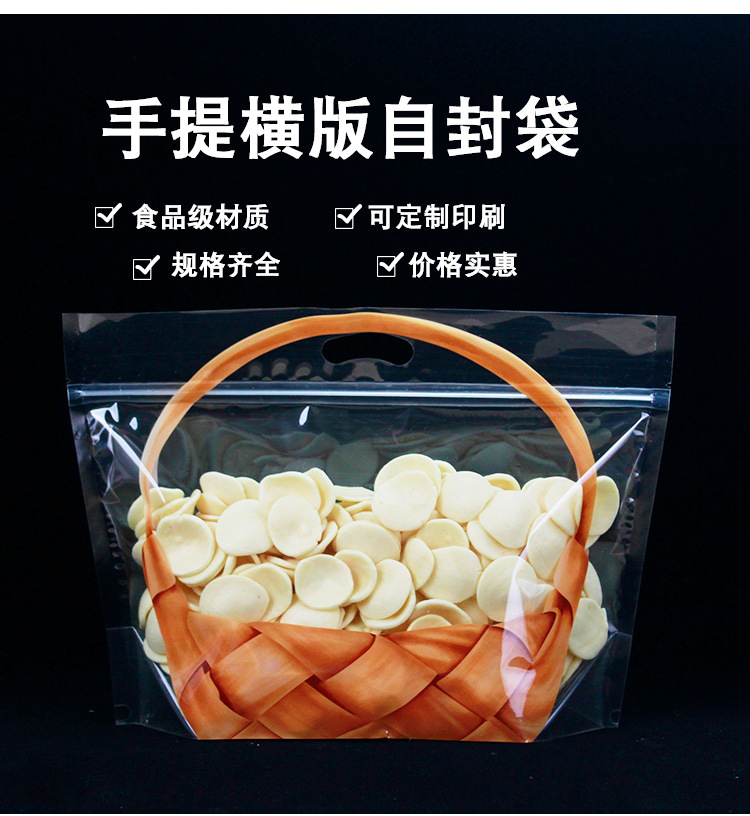 純粋な手作り包装袋ポテトチップス自封袋落花生密封袋ビスケットゼロ食品袋透明ビニール袋