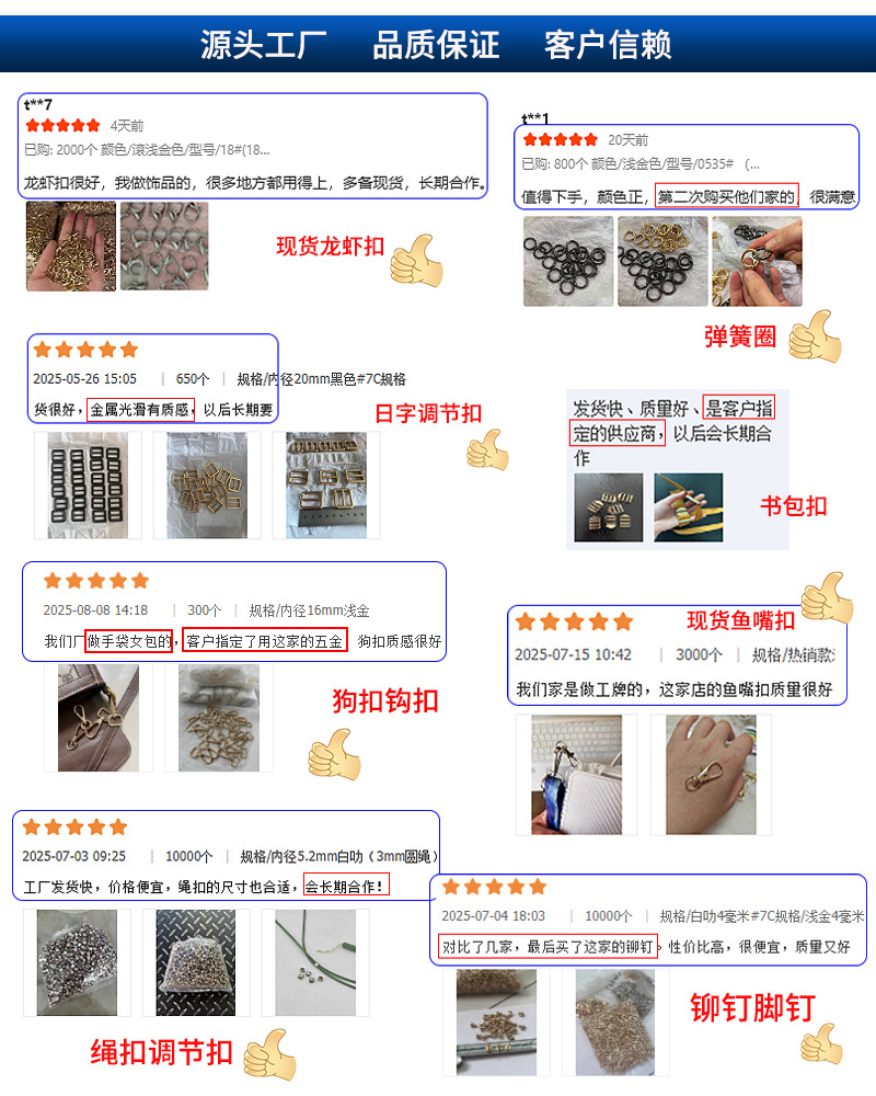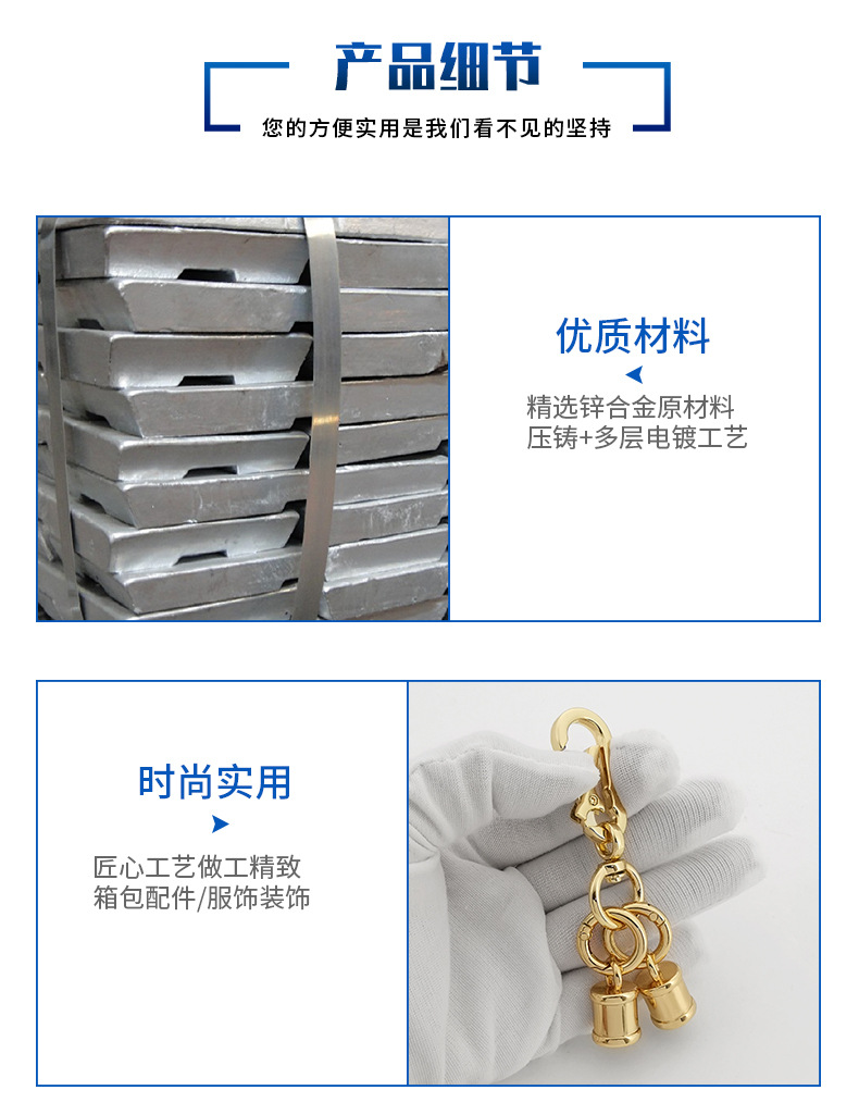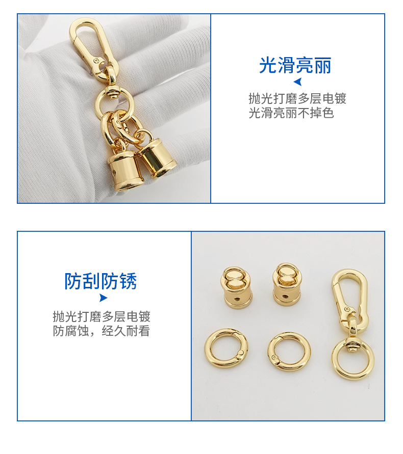 浅金色手机挂绳挂链狗扣 背带夹挂绳钩扣 包包五金绳头吊桶小旦扣