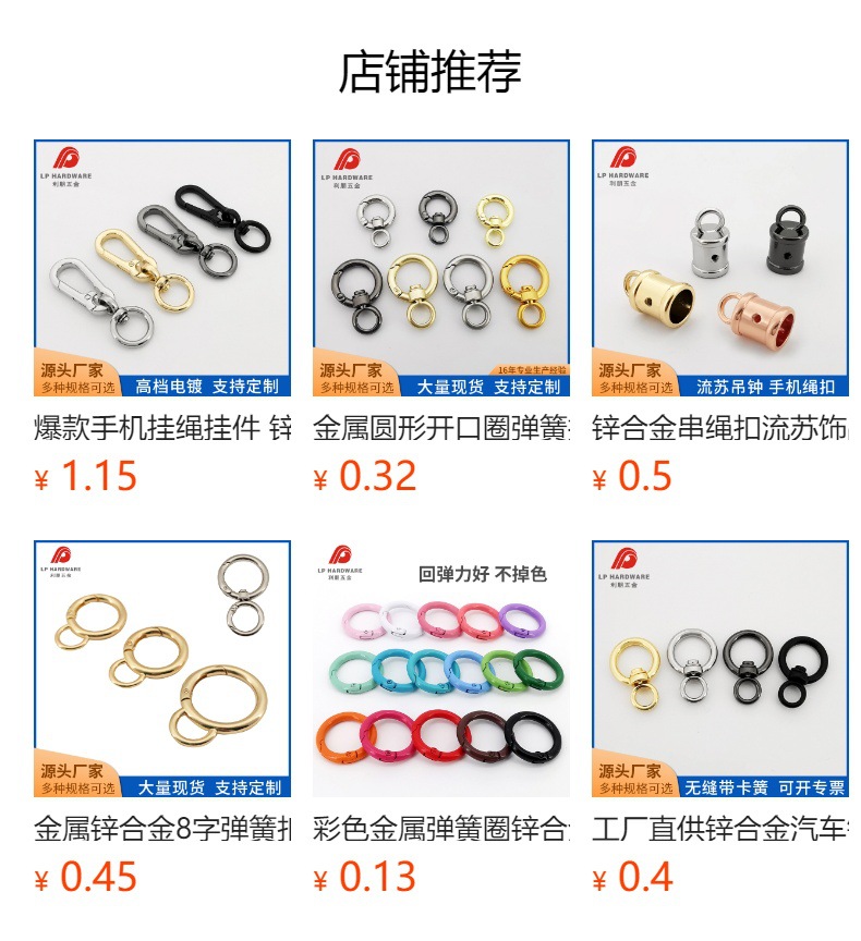 饰品配件弹簧开口圈金属弹簧圈钥匙扣包包五金扣开口圆环活动圈