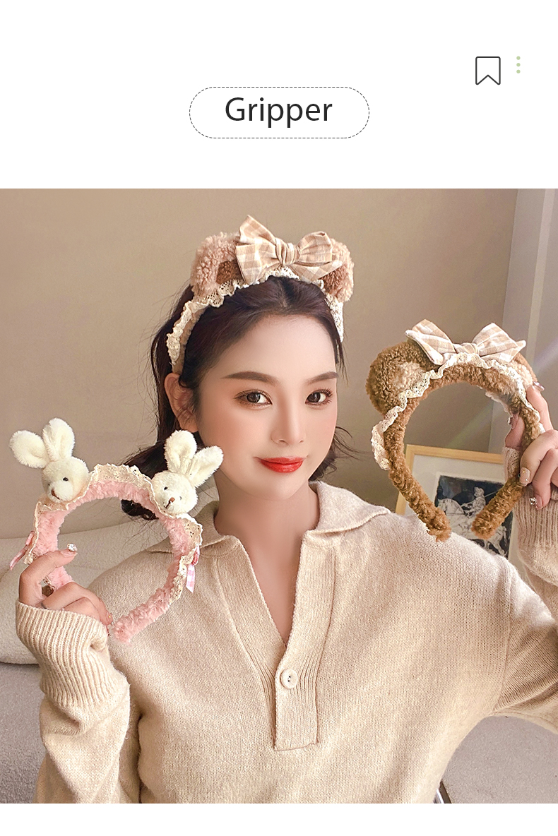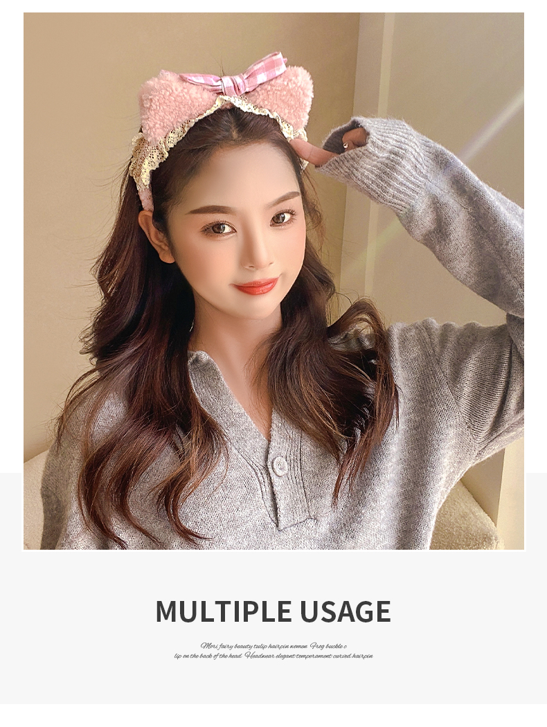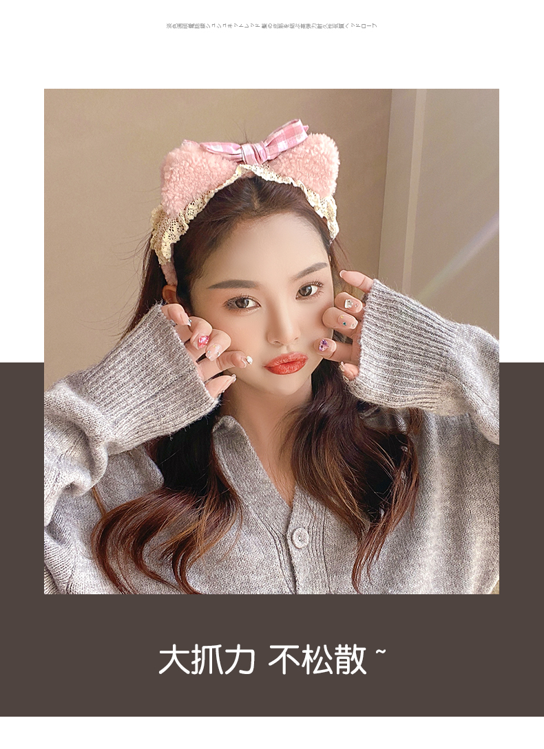 爆金熊耳洗顔カチューシャ子羊毛蝶結びカチューシャLolitaスタイルの柔らかい妹がカチューシャの髪飾りを責める