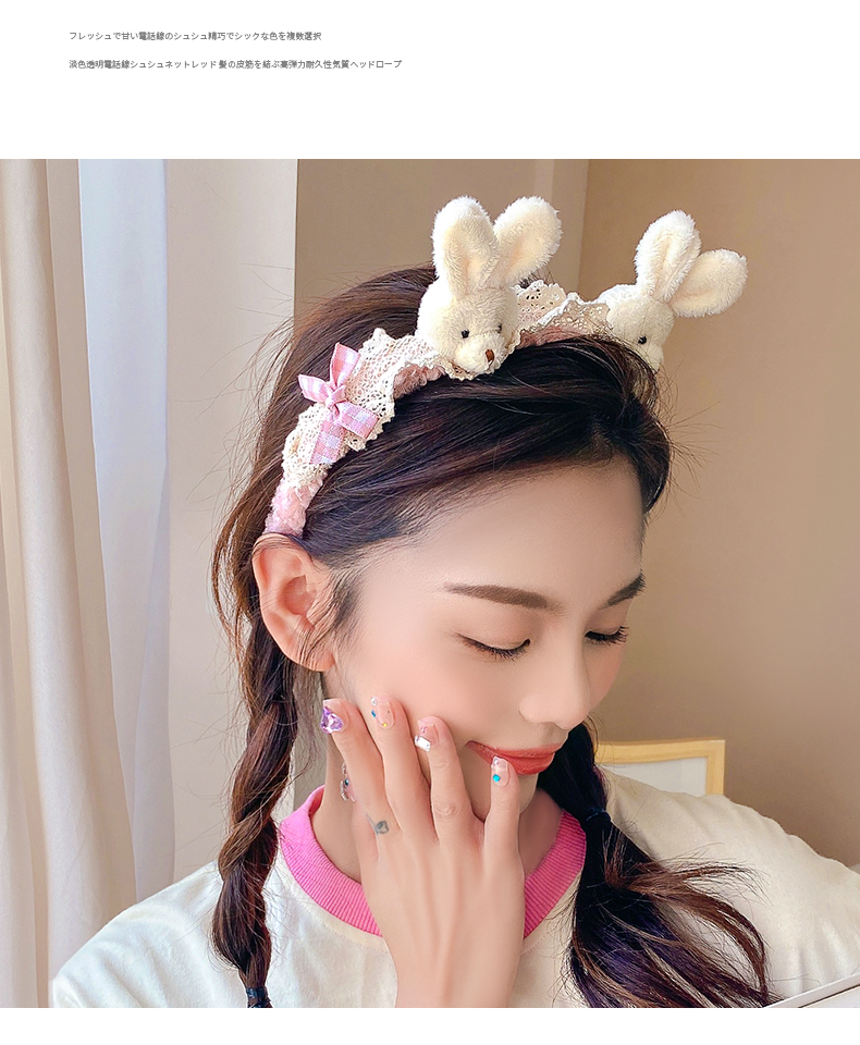 カラー ウサギの頭のカチューシャ,ウサギの頭の粉のカチューシャ,ウサギの頭の浅いカレーのカチューシャ,猫耳カレーヘッドバンド,猫耳パウダーヘッドバンド,猫耳の浅いカレーフープ