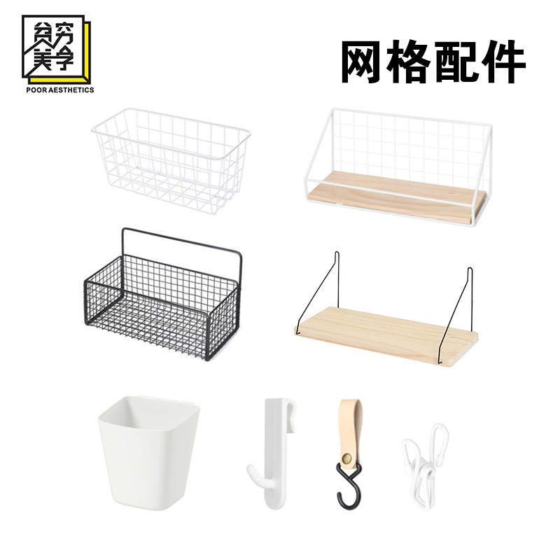 貧困美学グリッドスクリーンアクセサリー棚サイドネット鉄製フック収納バスケットフォトウォールクリップグリッド収納