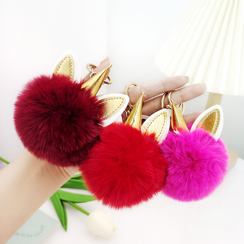 かわいいのは、ウサギの毛の猫の爪の車のキーホルダーのストラップins風の毛のボールのバッグのペンダントの贈り物の卸売りです。