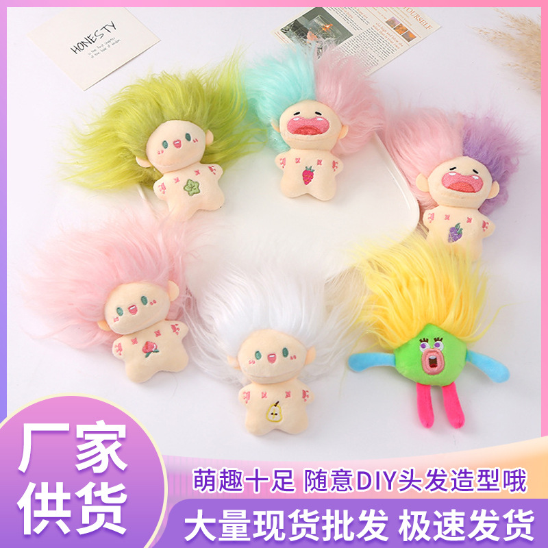 綿の人形を責めて、毛が狂った人形のミニかわいいぬいぐるみのかばんのキーホルダーを揚げます。
