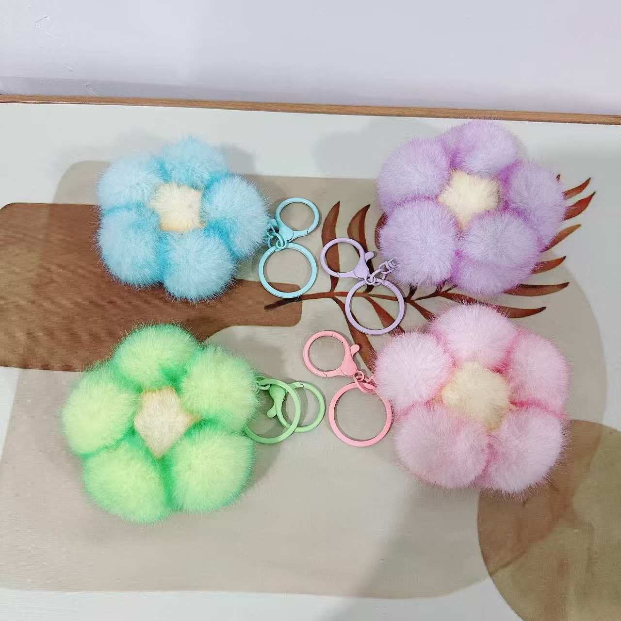 創意的な花の毛玉の鍵は自動車のキーホルダーの贈り物のぬいぐるみの小さい花の包みのペンダントの携帯電話の装飾品の卸売りを掛けます。