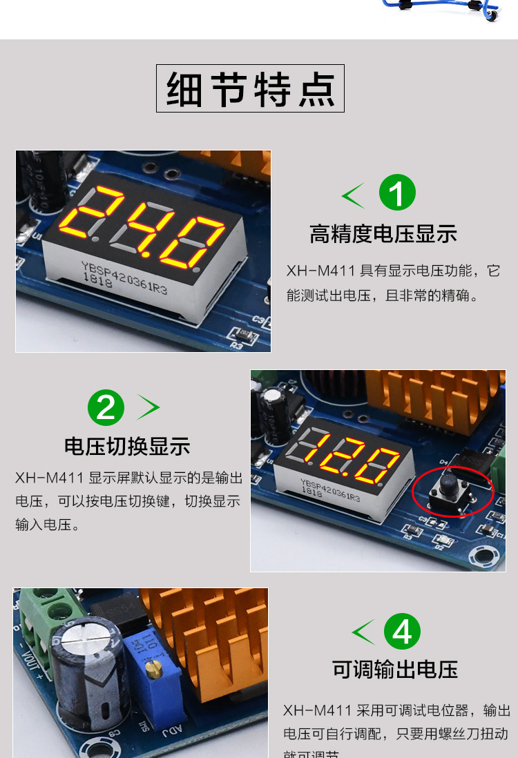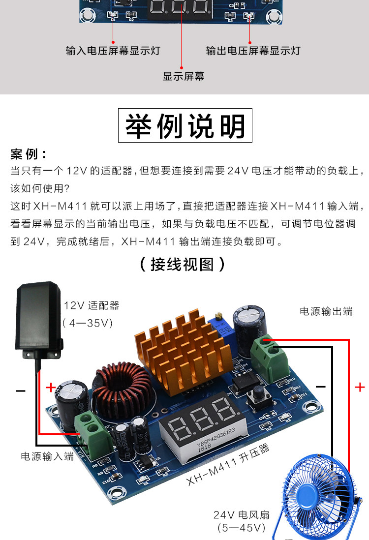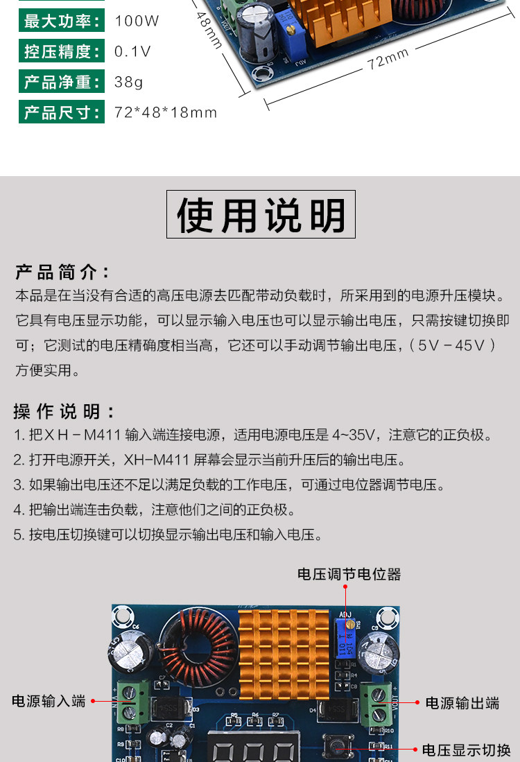 XH-M411 DC-DCデジタル昇圧板昇圧モジュール大出力昇圧板昇圧5-45V出力5A