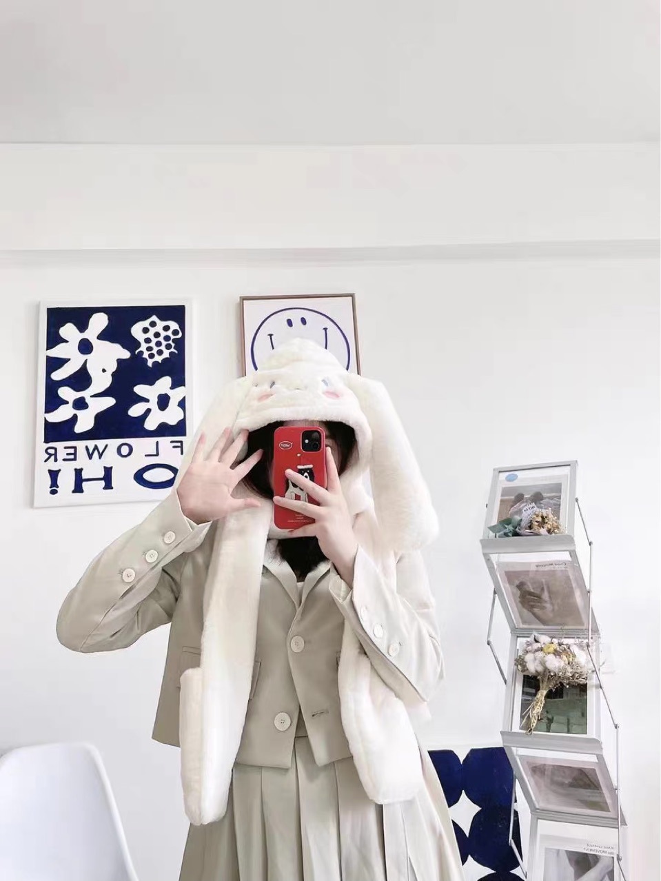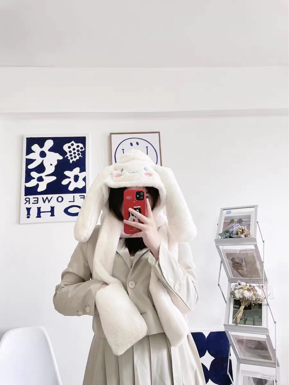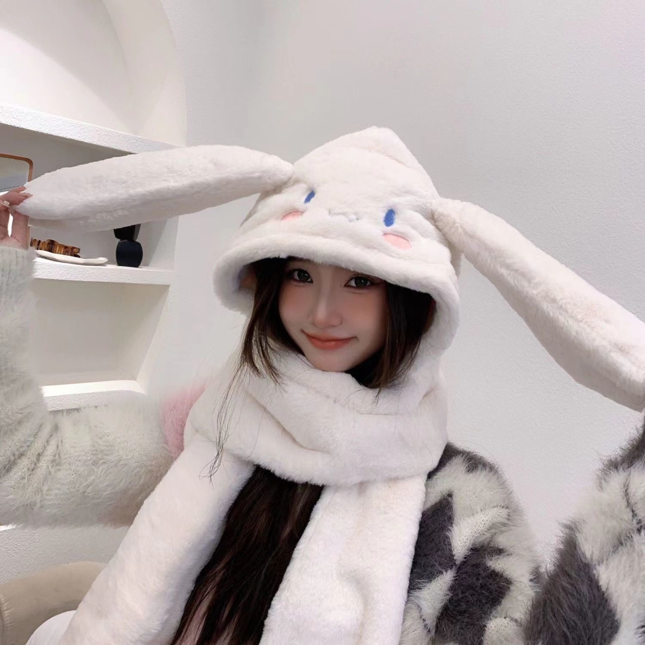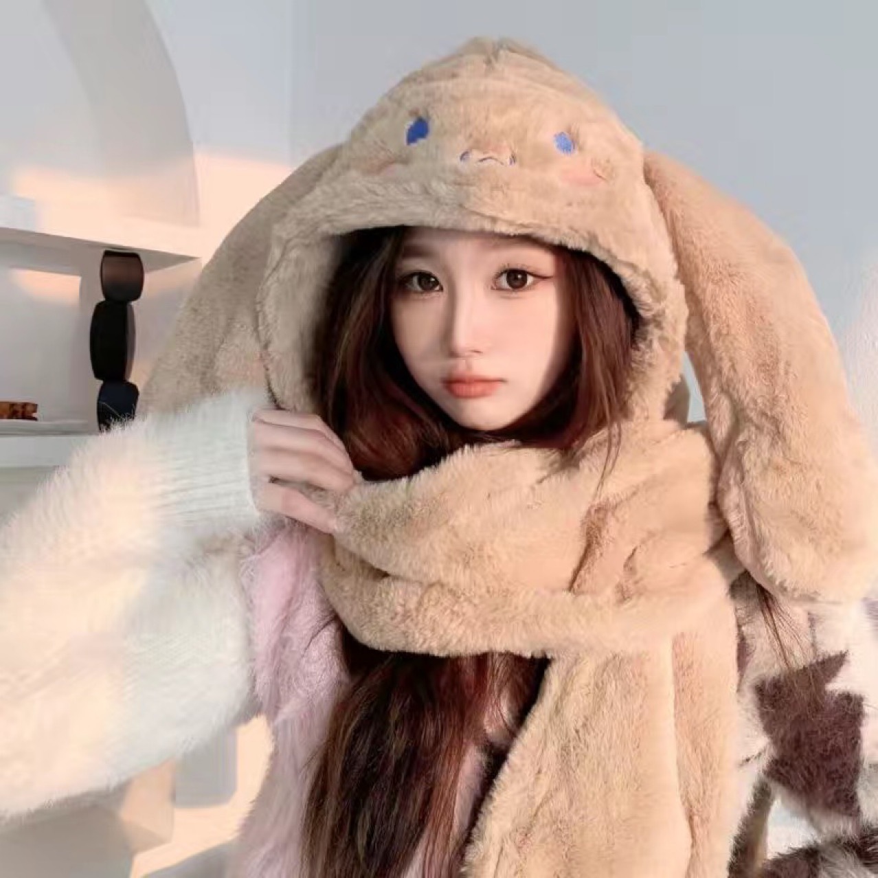 冬用帽子とネックウォーマー一体型、女性用のかわいいシナモロールスカーフと手袋の3点セット、暖かい、学生、女の子向け、ふわふわ。