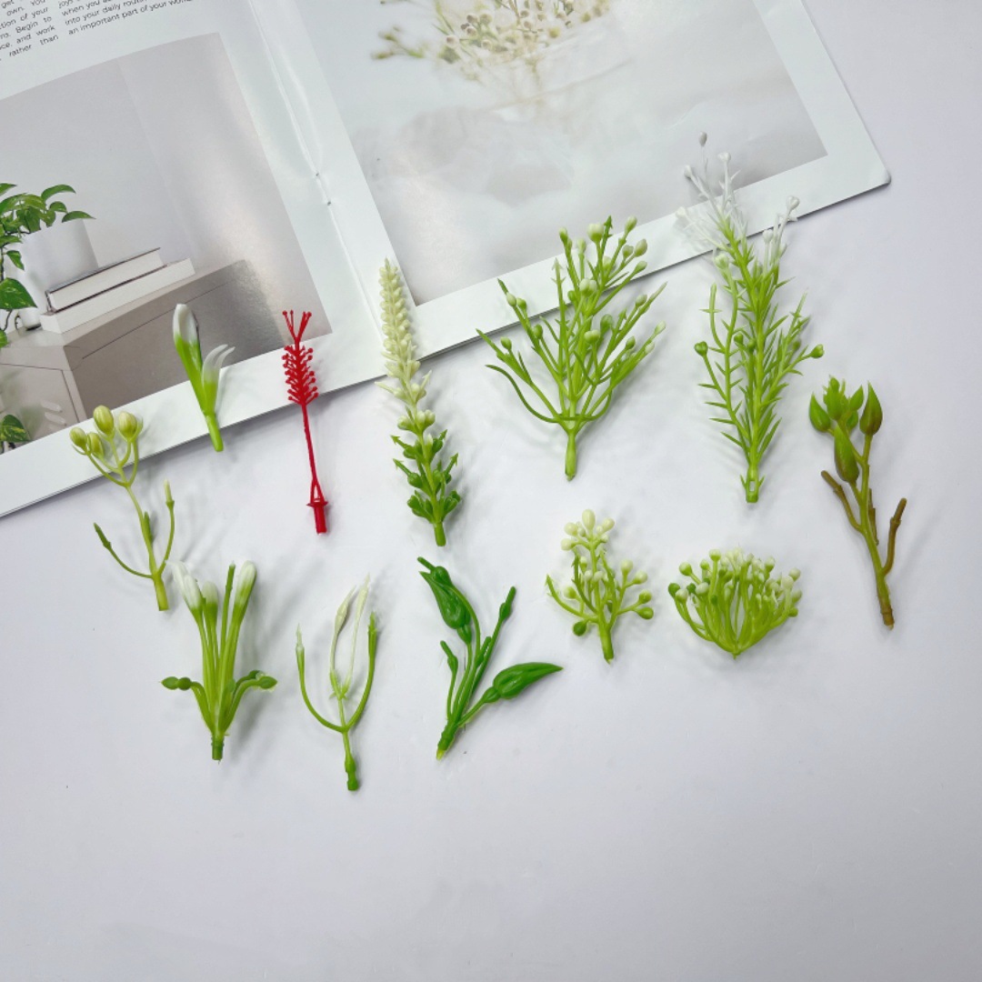 模擬植物、模擬花、プラスチックフォークアクセサリー、ウェディングハンドルブーケ、12フォークフォーク、フォーク、フェイクフラワーデコレーション