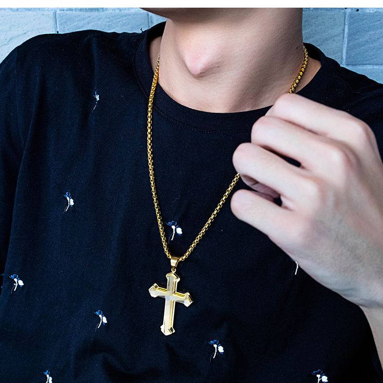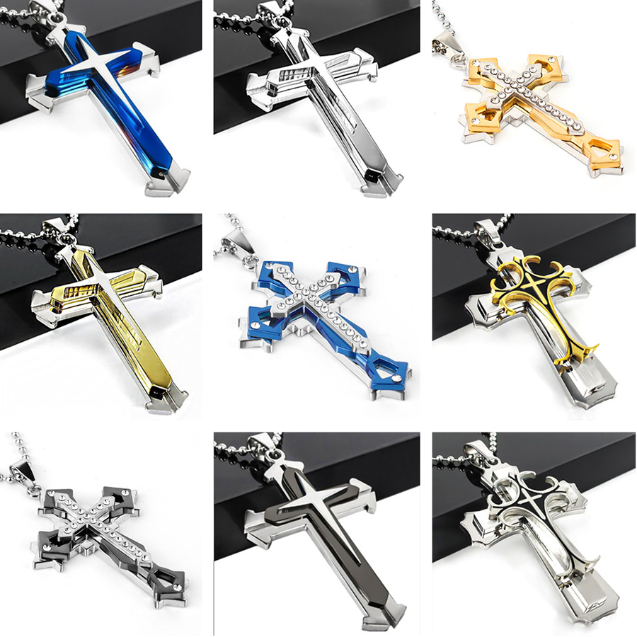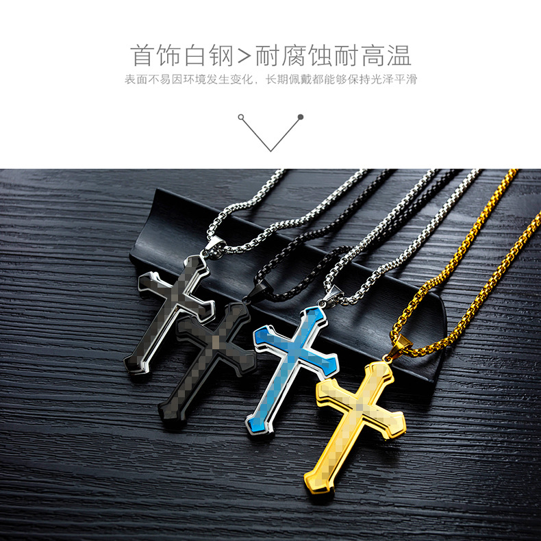 チタン鋼三層レトロクロスペンダント男性ネックレスペンダント欧米ヒップホップ男性アクセサリーメーカー直販