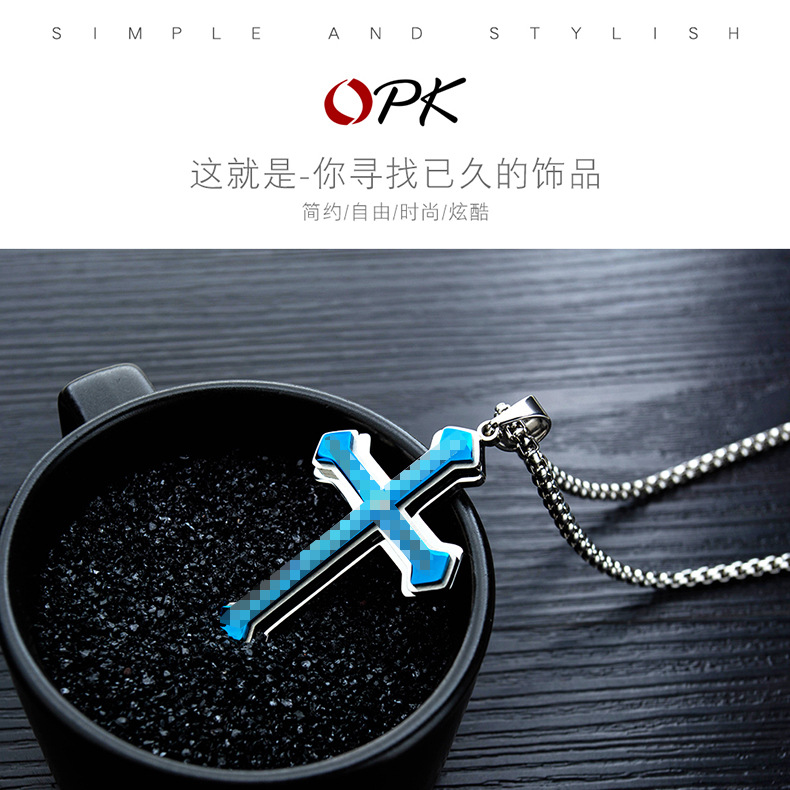 対外貿易の電気商の商品のソースのチタンの装飾品のクロスペンダントのステンレスの男性のネックレスのメーカーは直接販売します。