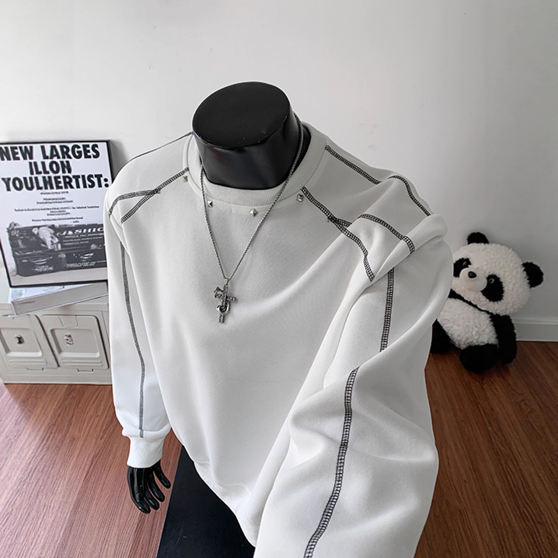 铆钉解构圆领卫衣男秋冬潮牌潮流美式衣服高级感痞帅宽松重磅外套