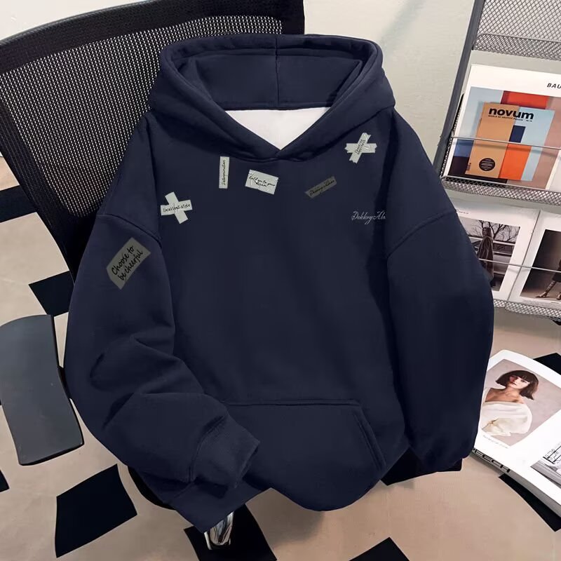 原宿慵懒ins新款流行高级感薄款加绒卫衣潮流时尚简约百搭文艺男
