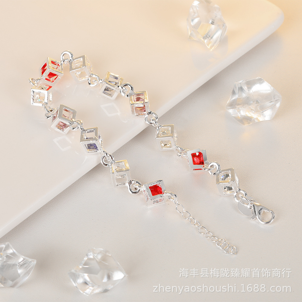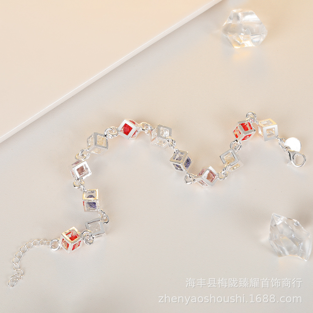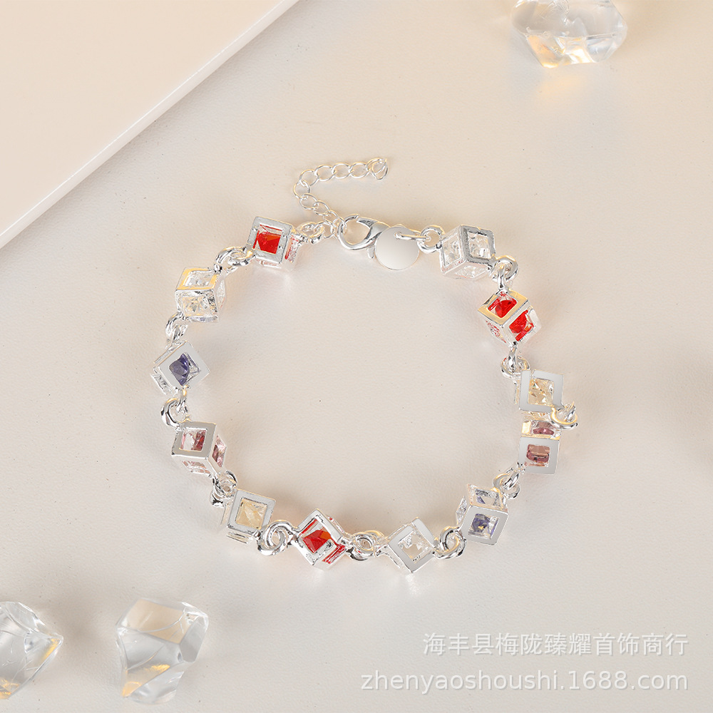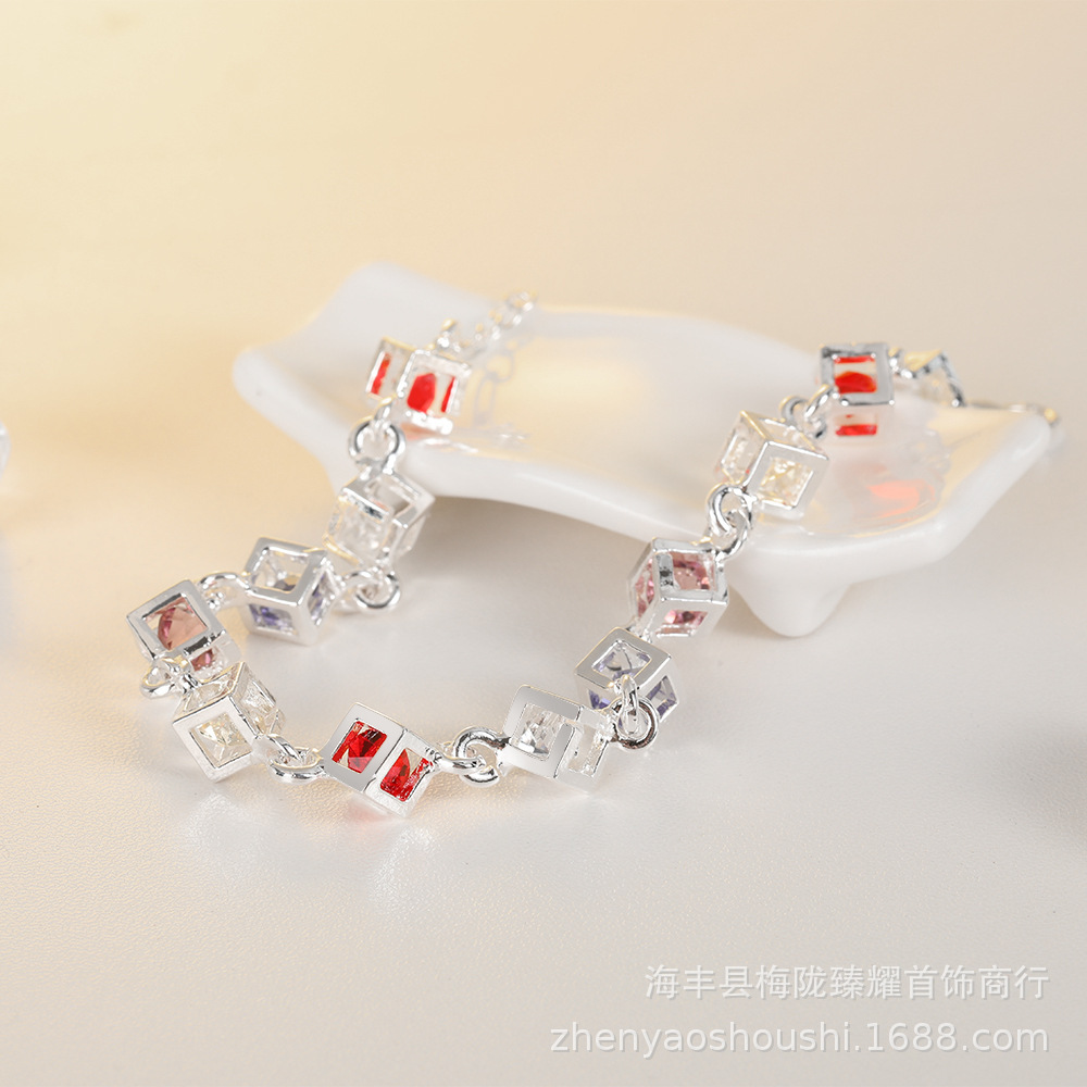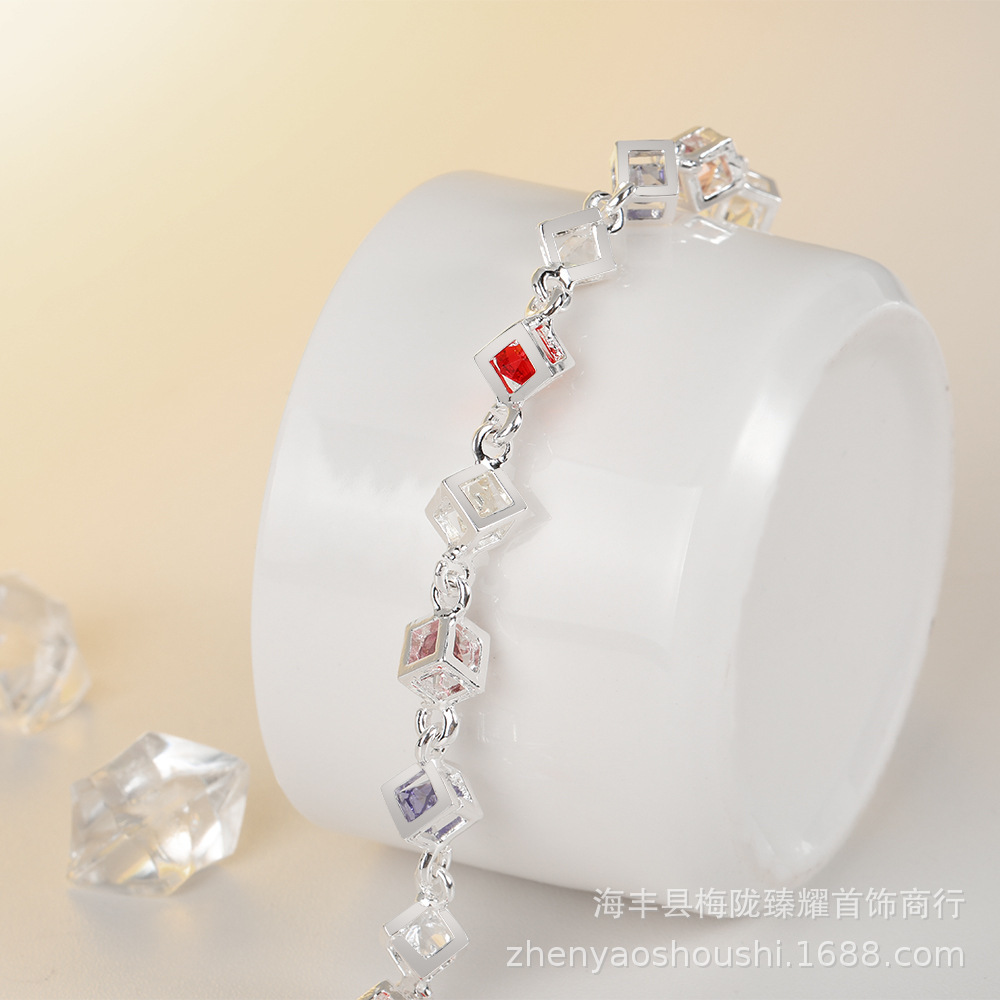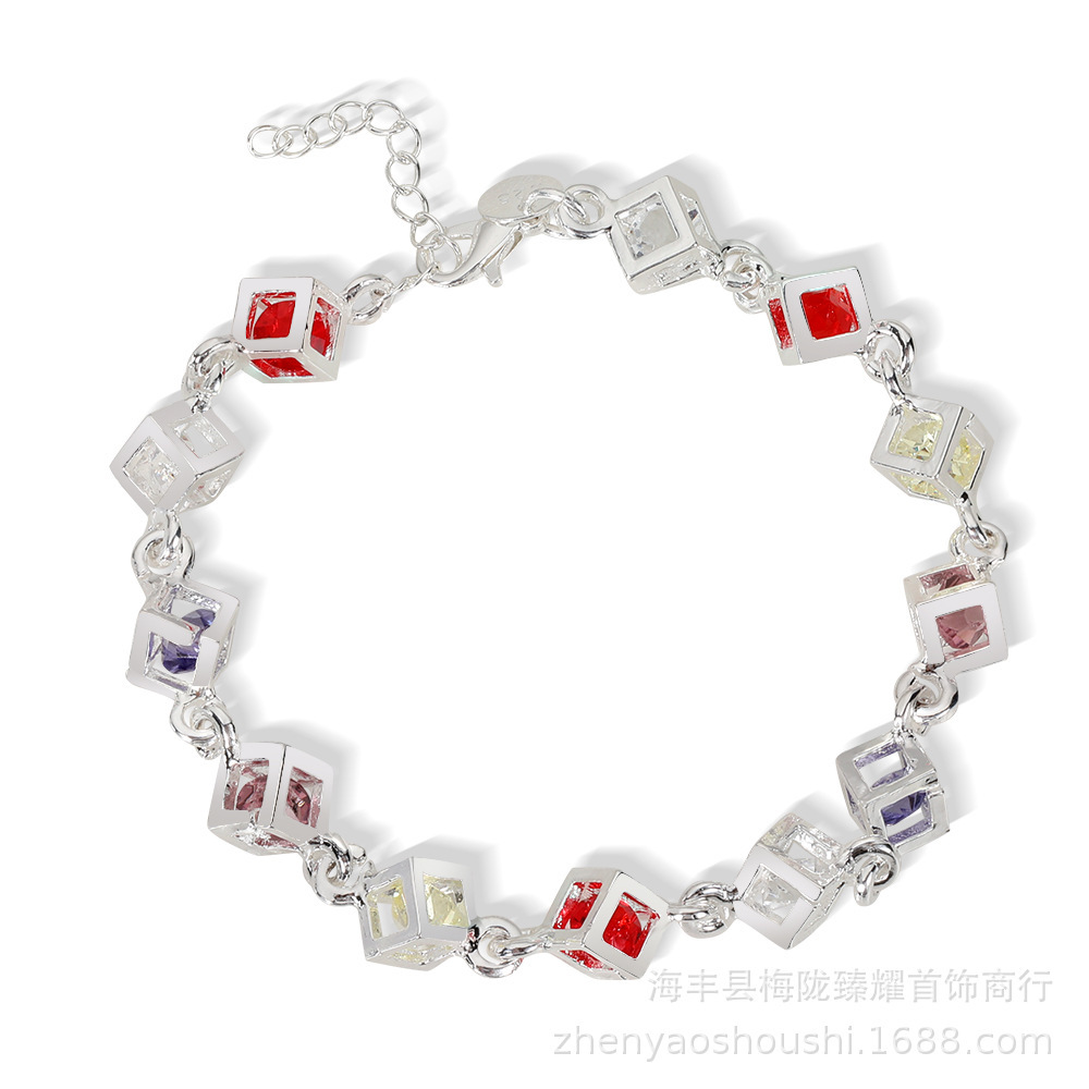 江銘の12個のルービックキューブの合金は銀のブレスレットの女性の方眼のカラーのジルコニウムのダイヤモンドをめっきします。